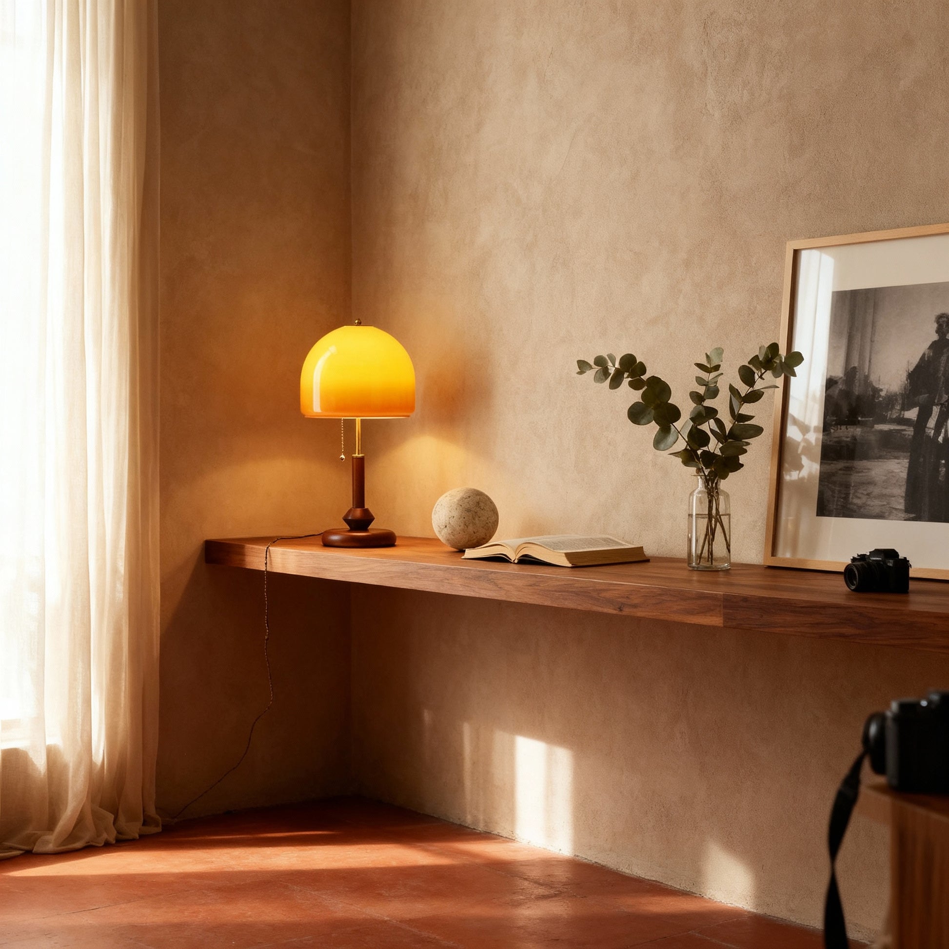 Arvo’s round glass shade and iron frame bring a refined vintage aesthetic to any living room. Its gentle neutral light creates a warm, inviting ambiance, perfect for reading, working, or adding subtle charm to your interior.