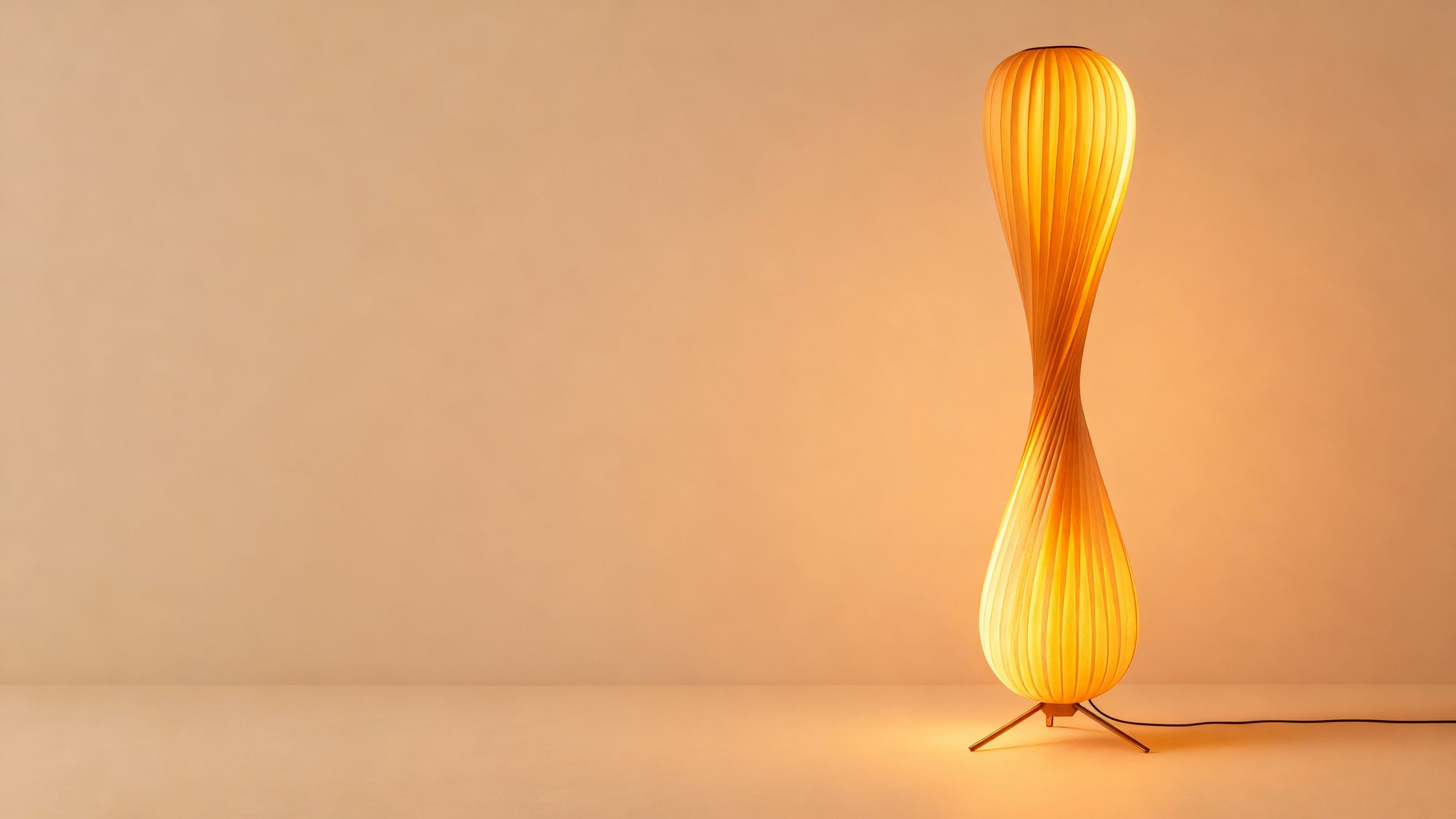 Slender wooden ribbons twist into an elegant, sculptural form, creating an ambient and calming radiance.