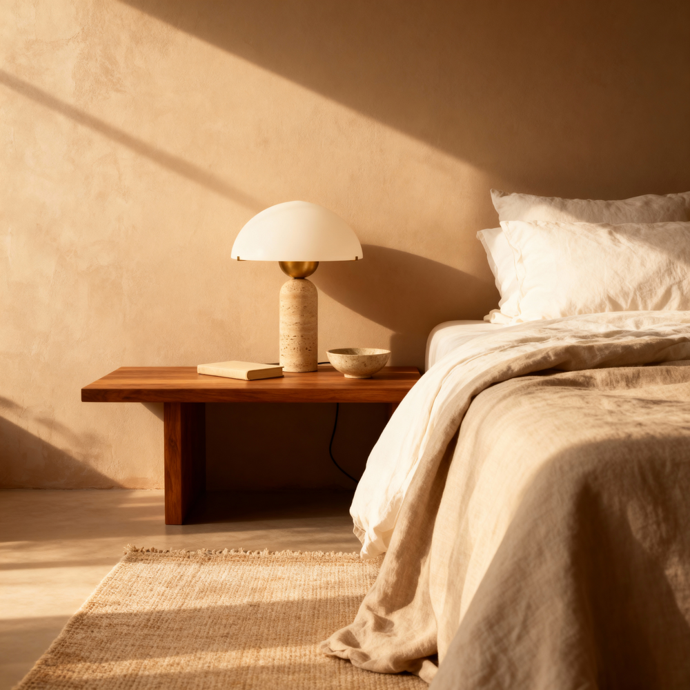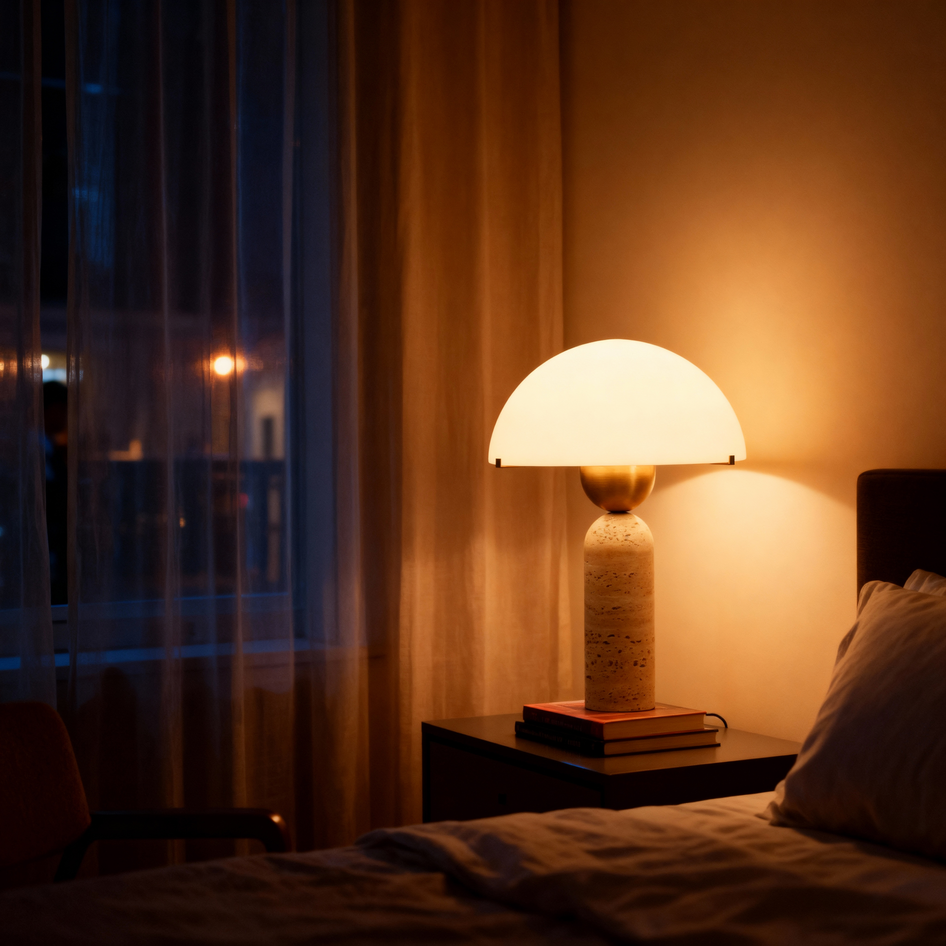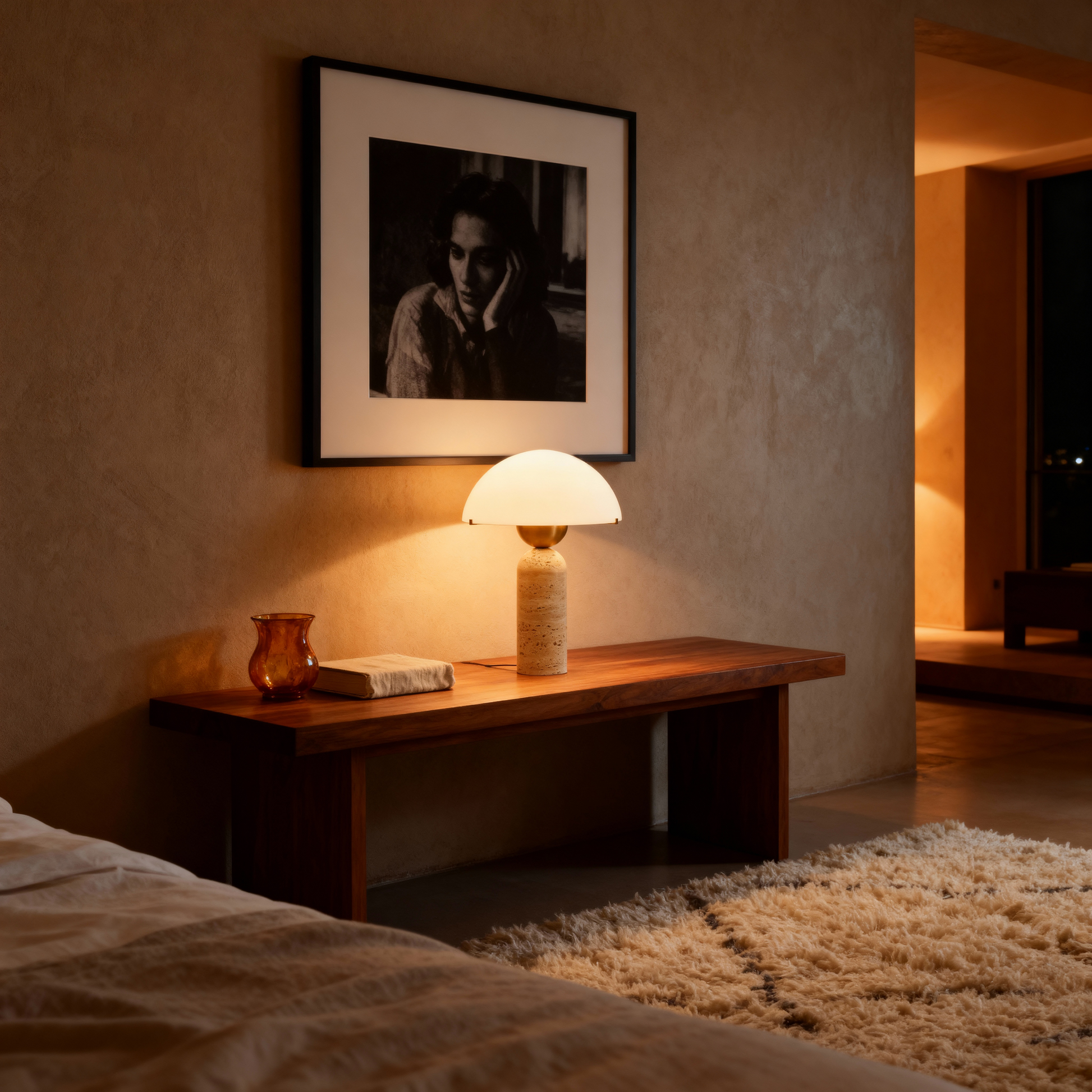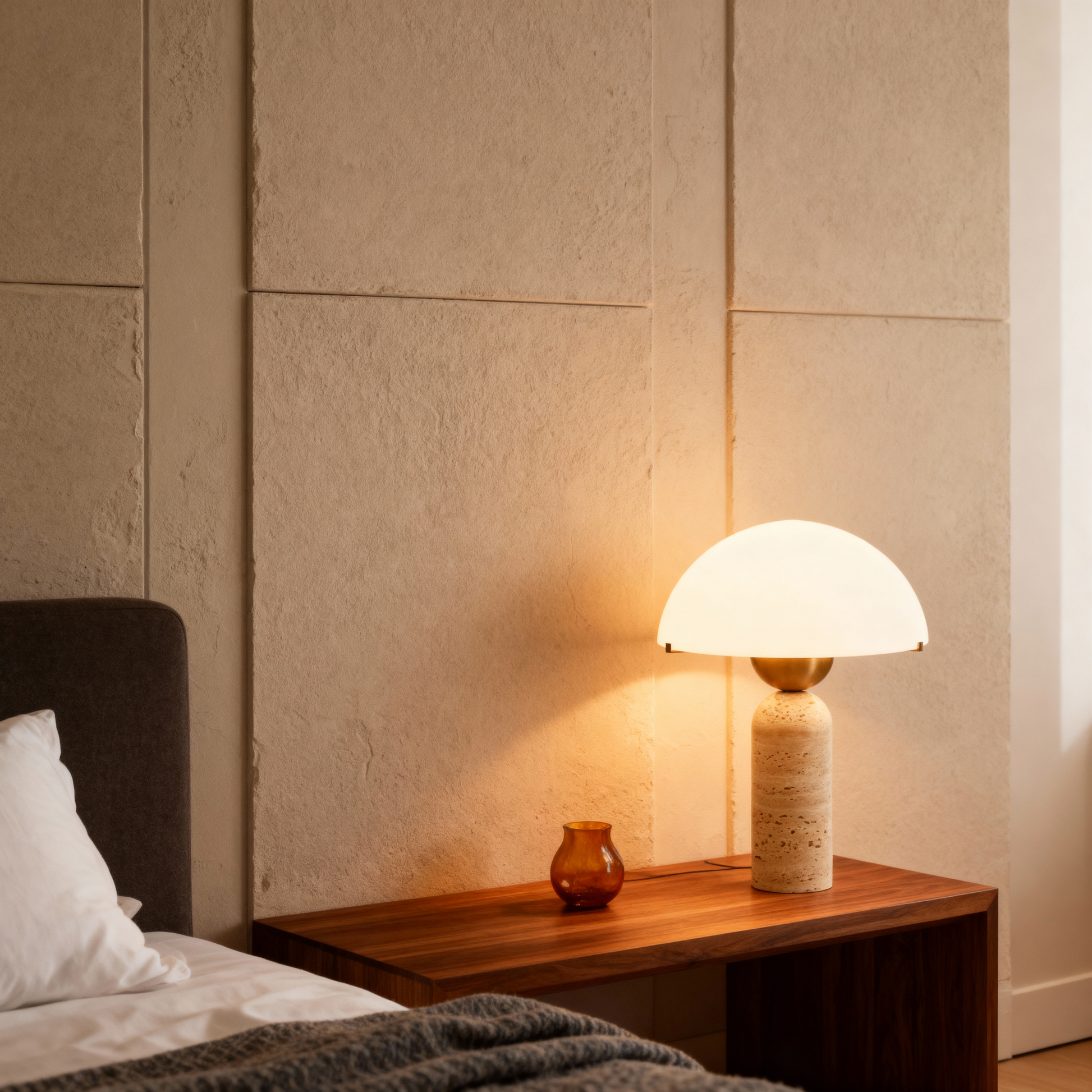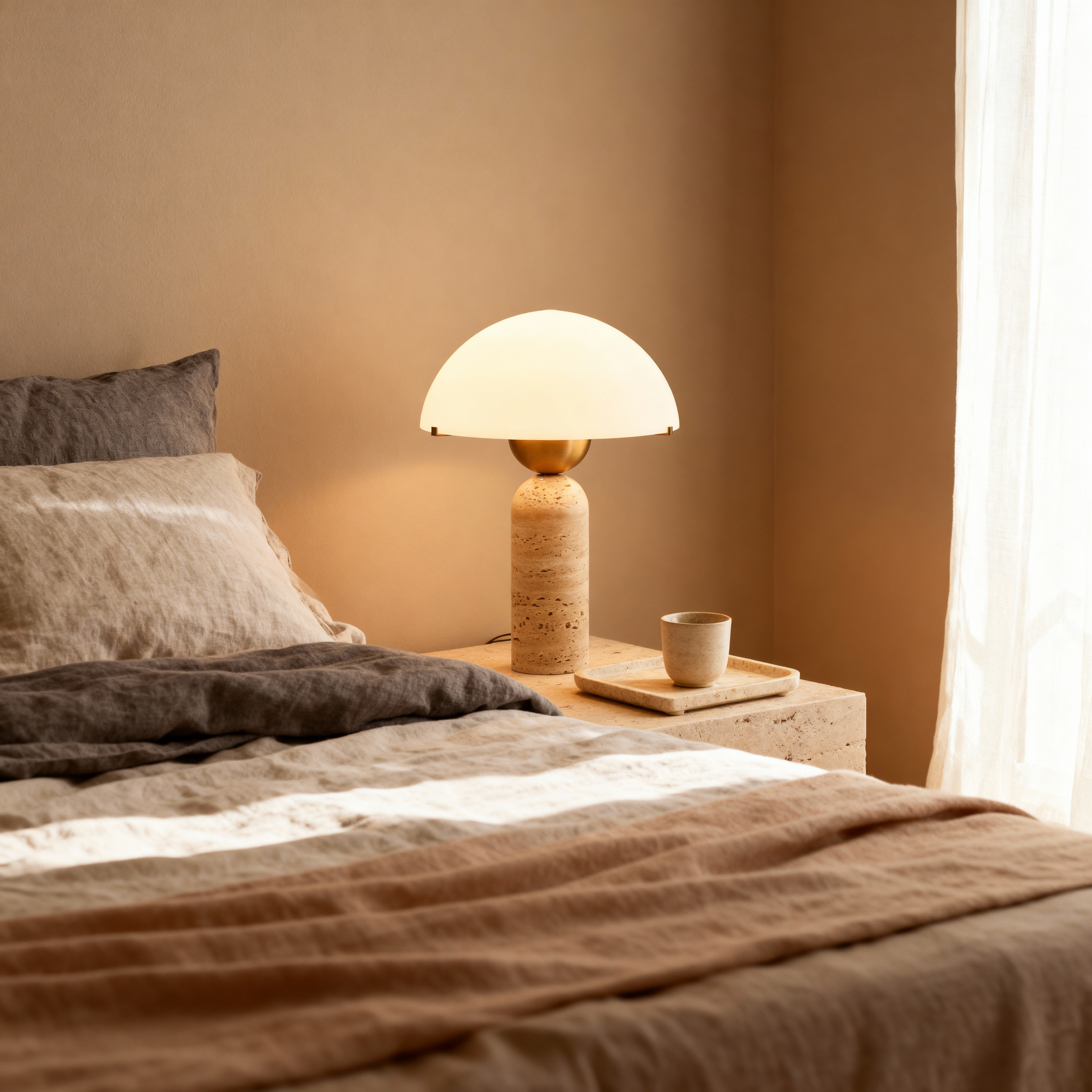 A desk lamp that celebrates travertine’s natural calm through balanced form and softly diffused illumination.