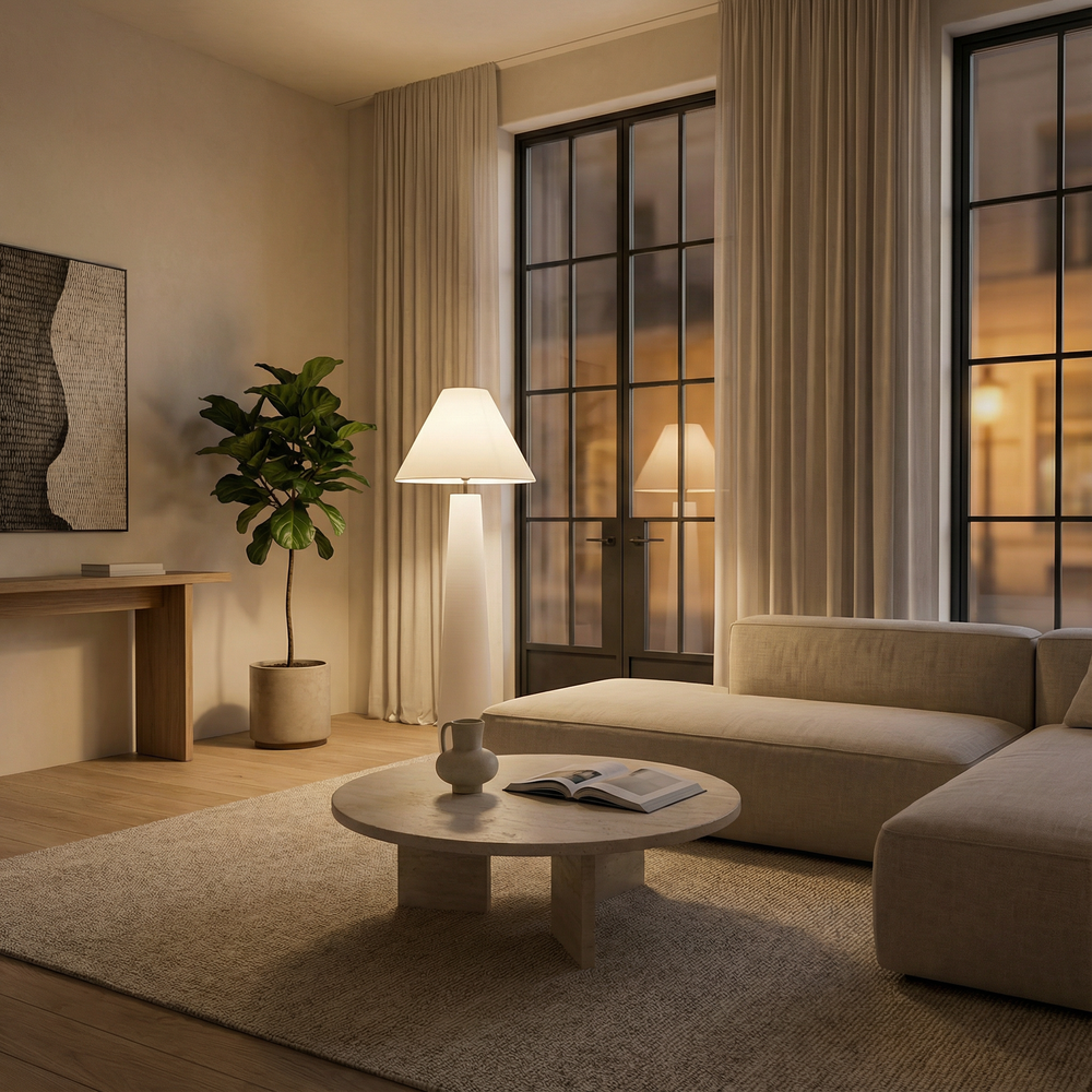 A calm, modern statement that brings soft atmospheric presence to clean, uncluttered interiors.
