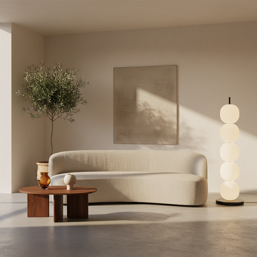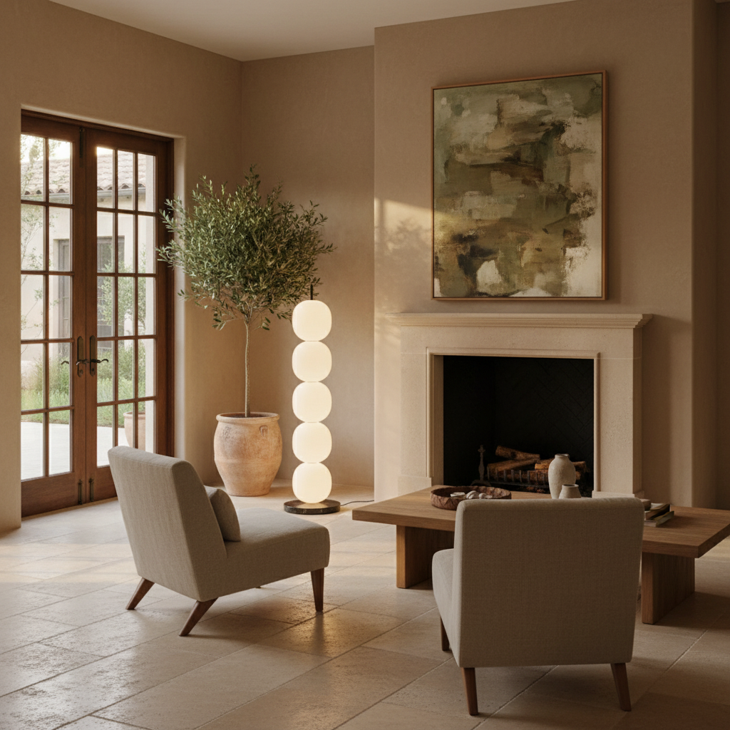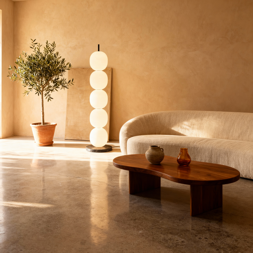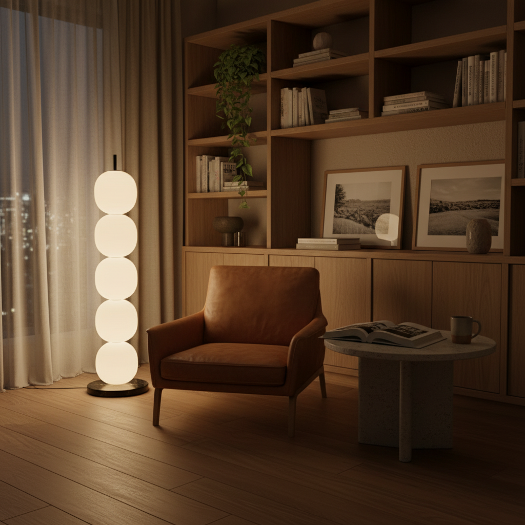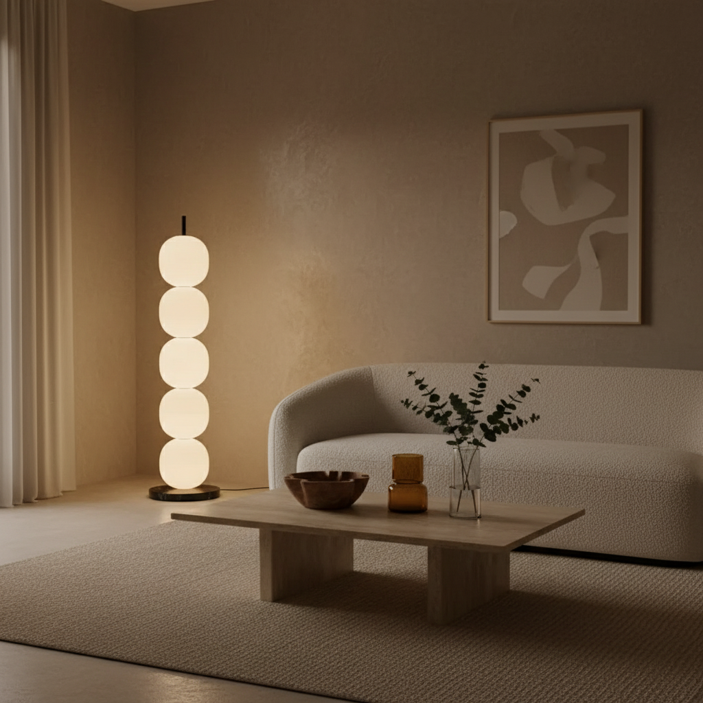 A serene balance of glowing spheres brings quiet architectural beauty to modern living spaces.