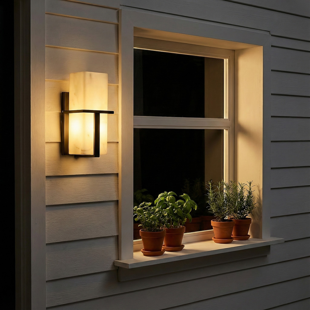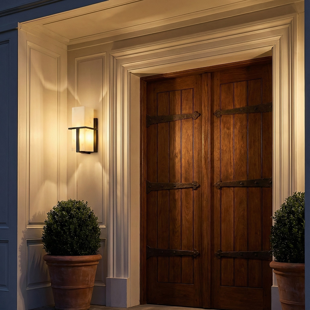 A minimalist outdoor wall light that brings enduring structure and glow.