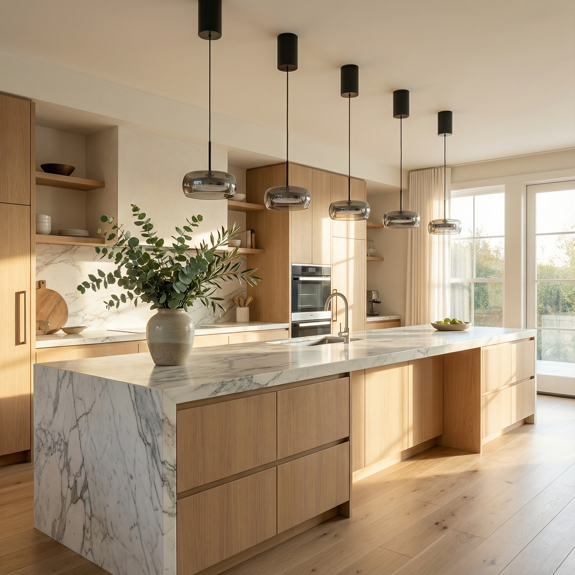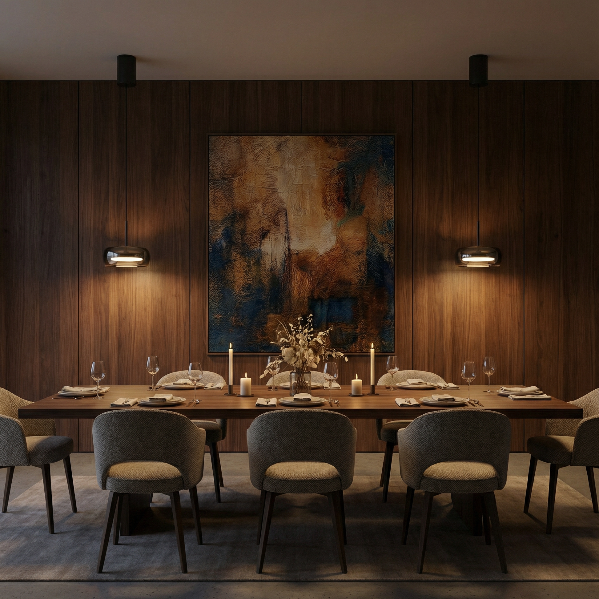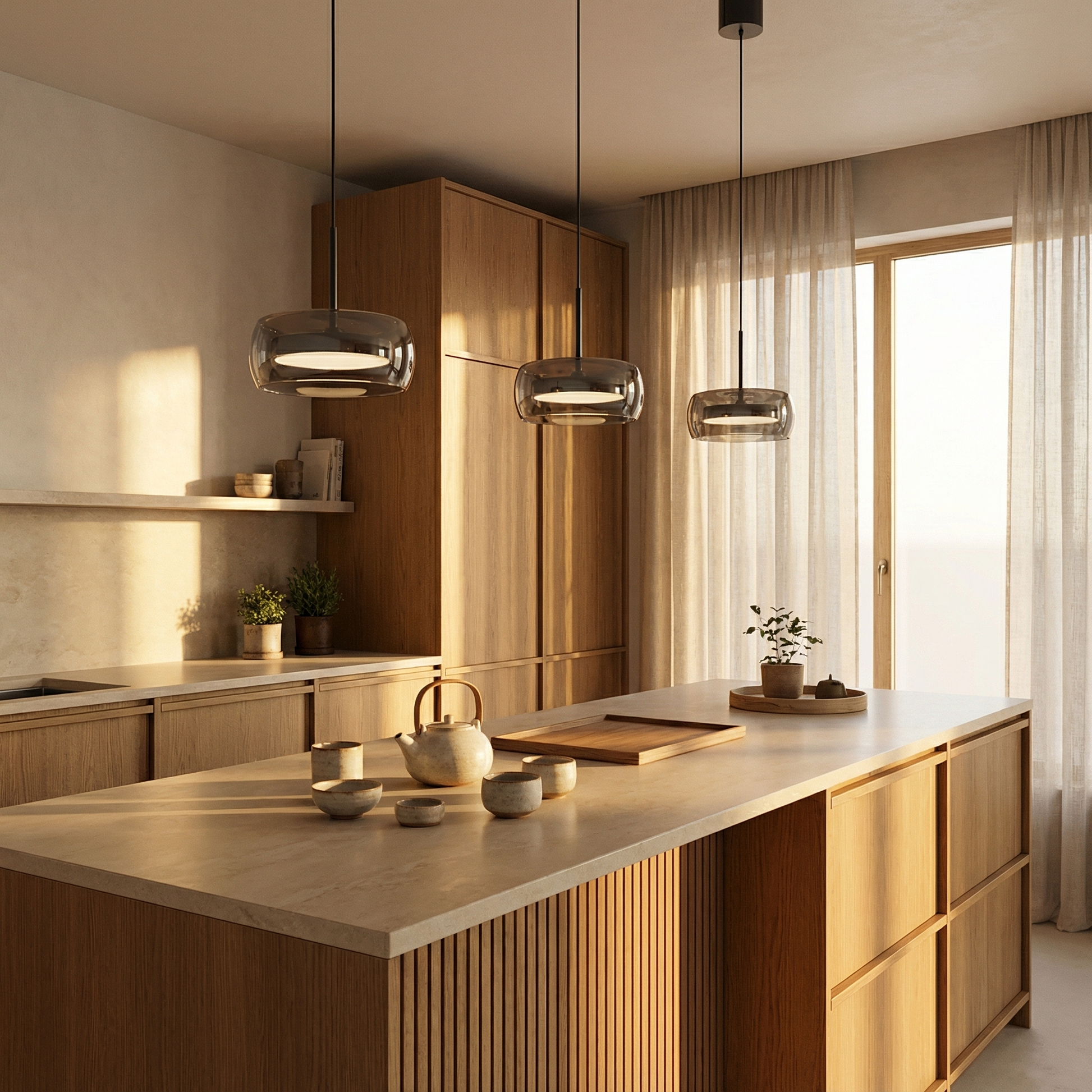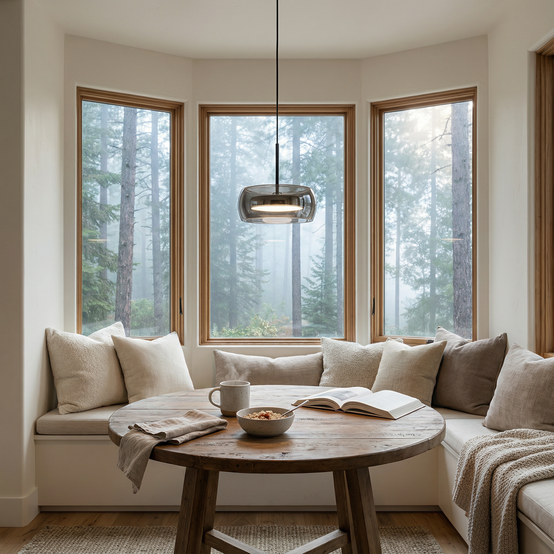A compact pendant that brings quiet balance to contemporary interiors through its soft, diffused presence.