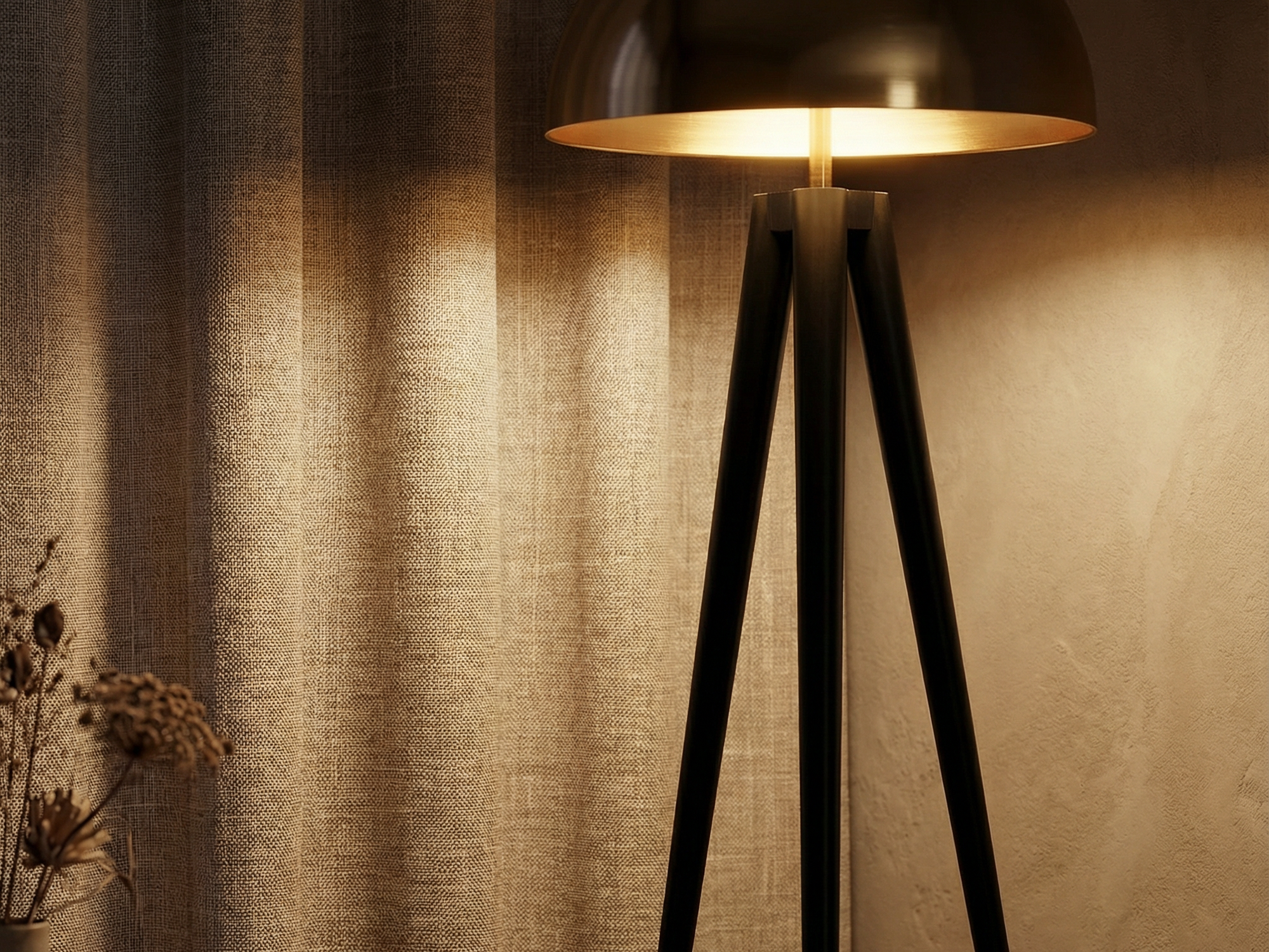 A balanced tripod silhouette brings sculptural clarity and soft ambient presence to contemporary interior spaces.