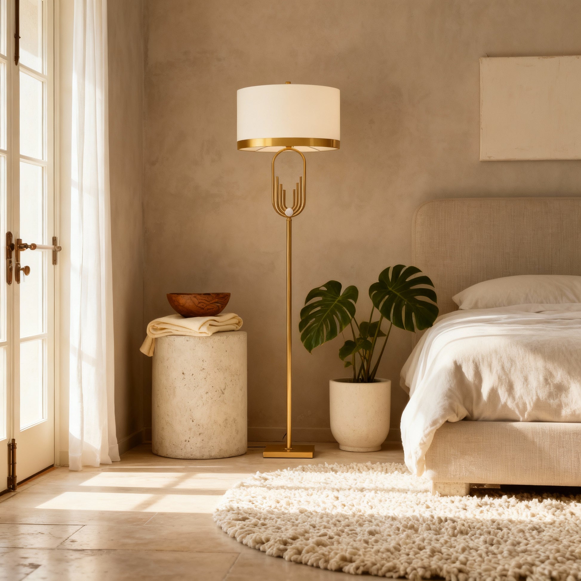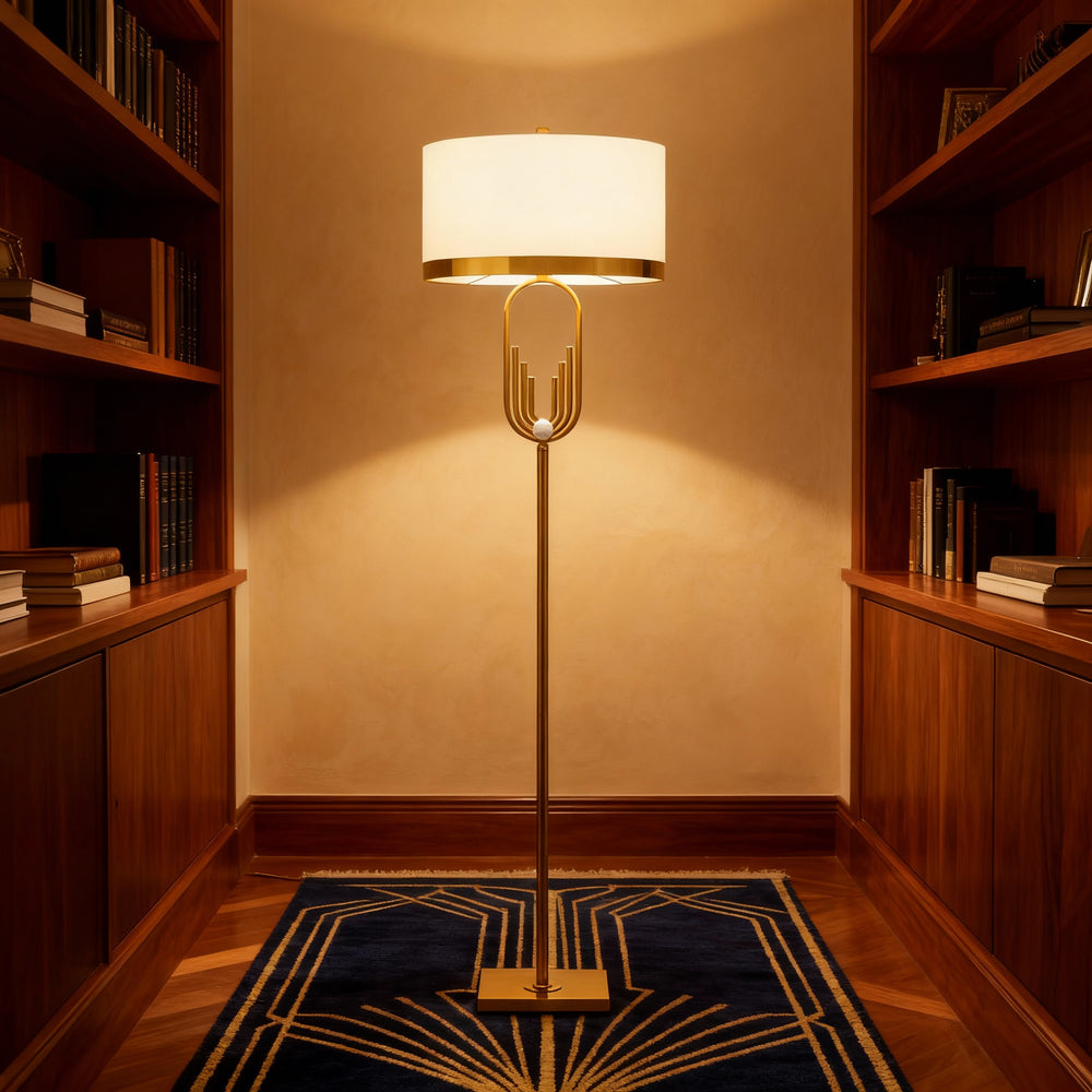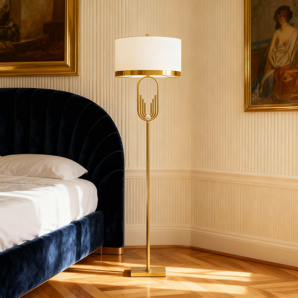 A refined floor lamp shaped for sophisticated interiors, balancing sculptural form with a warm, elegant glow.