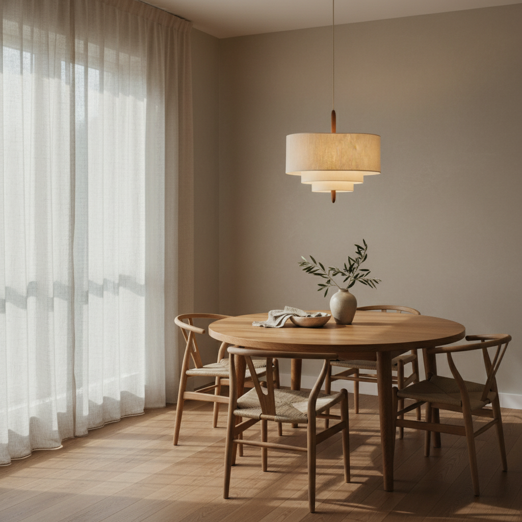 A layered silhouette that diffuses a gentle glow, creating warmth and dimension in modern living spaces.