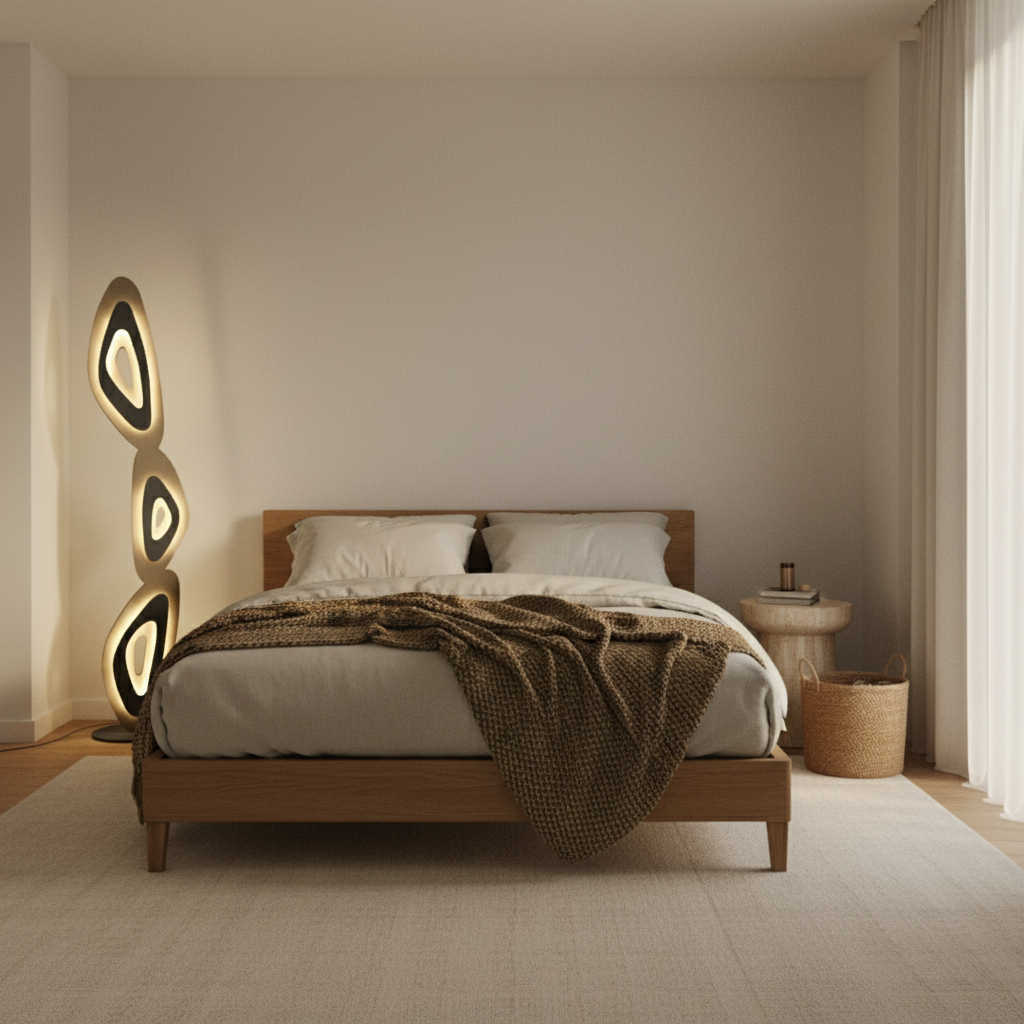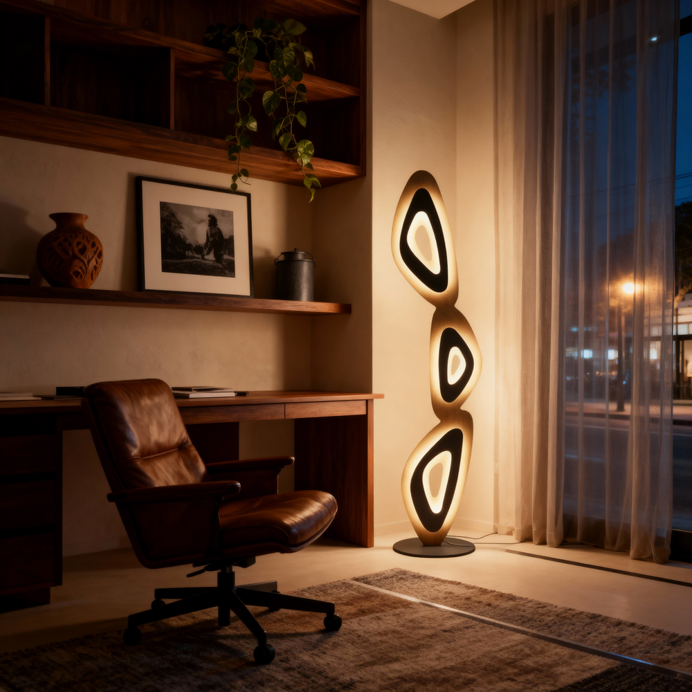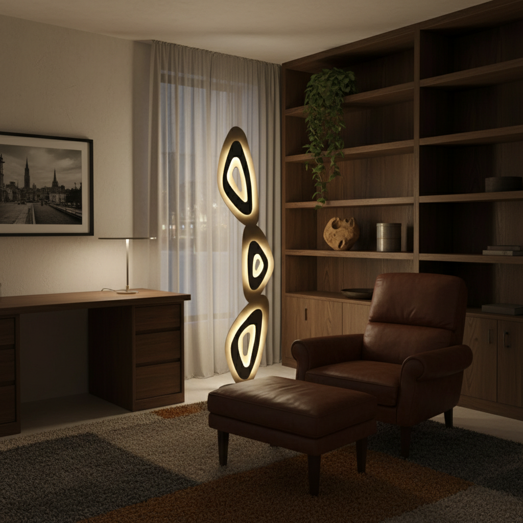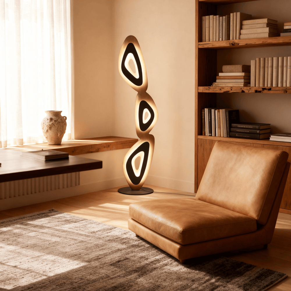 An expressive modern lamp that merges organic balance and soft illumination for artful, tranquil interiors.
