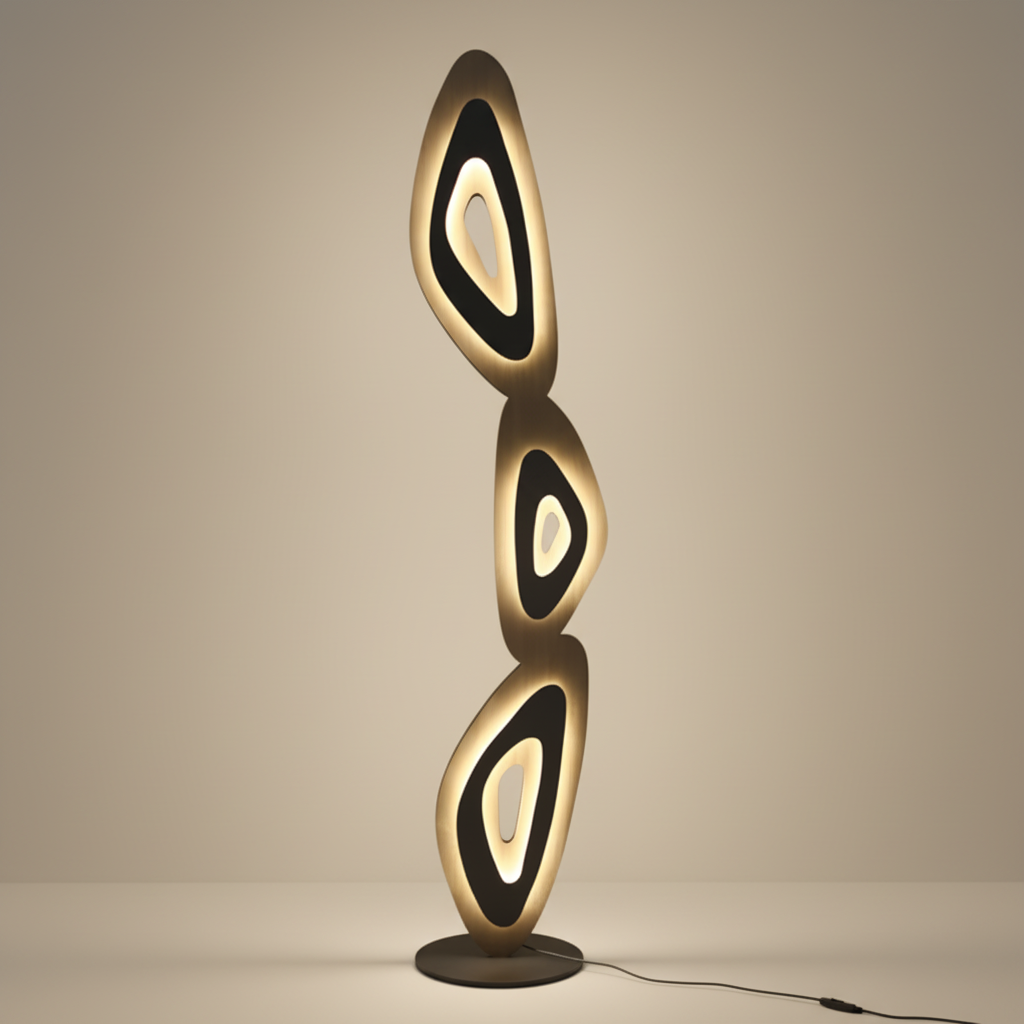 The Kismet’s fluid silhouette and layered geometry create a luminous statement that shifts with every perspective. Its glowing contours cast a gentle, sculptural radiance, enriching modern living spaces with quiet warmth and dimensional beauty.