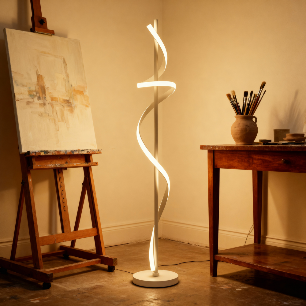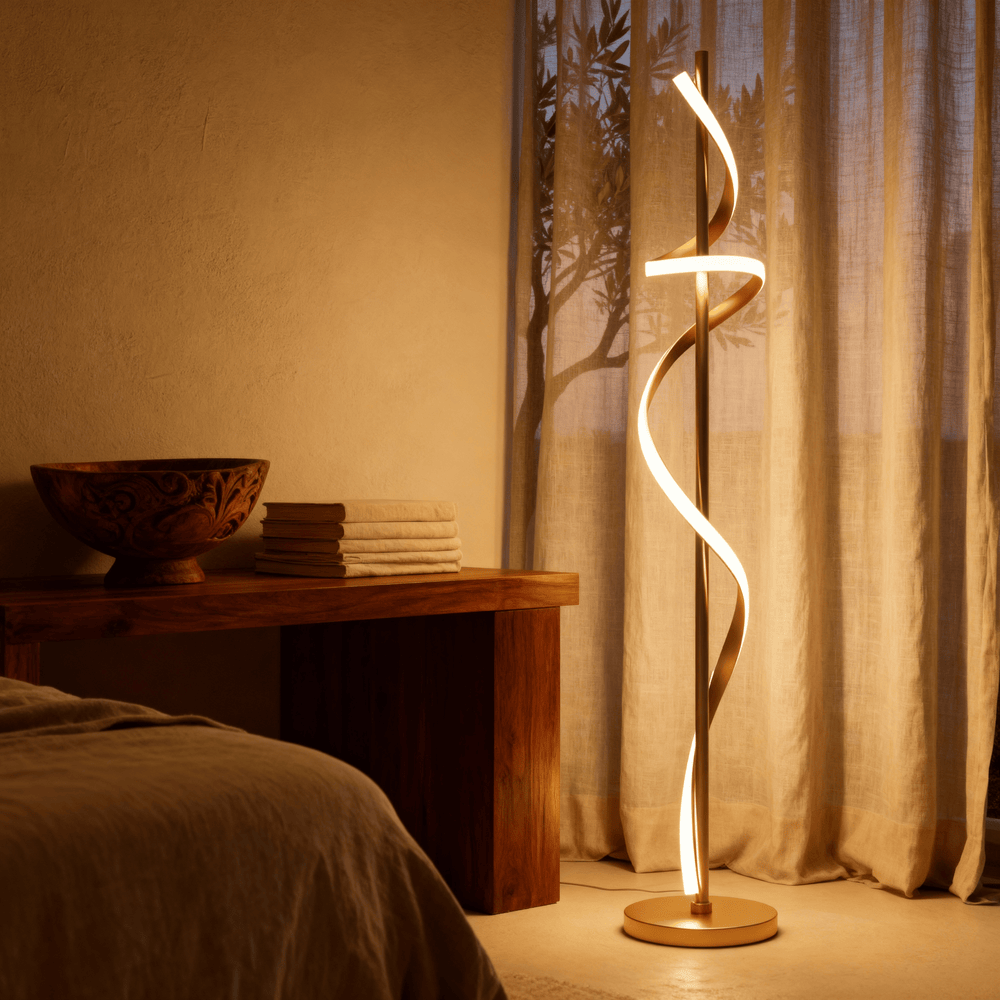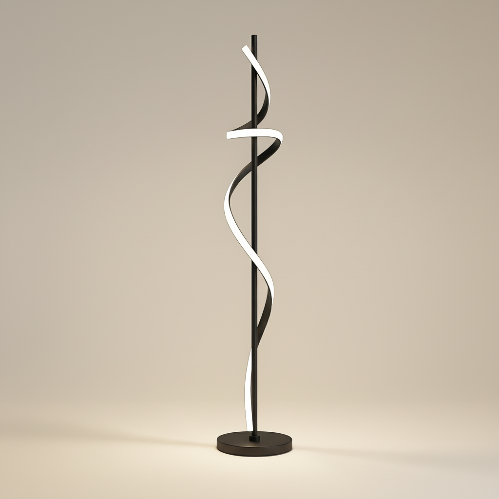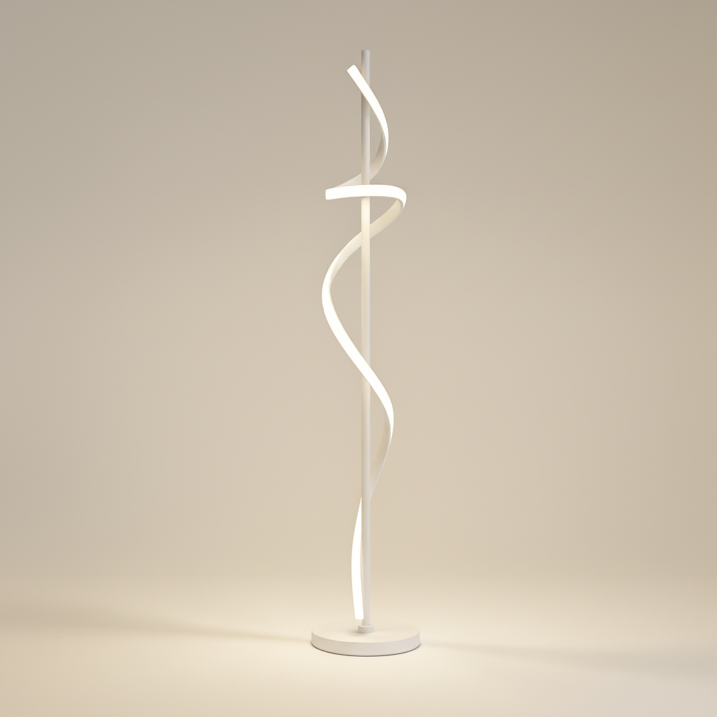 A modern spiral floor lamp that blends luminous motion with refined minimalism for elevated interiors.