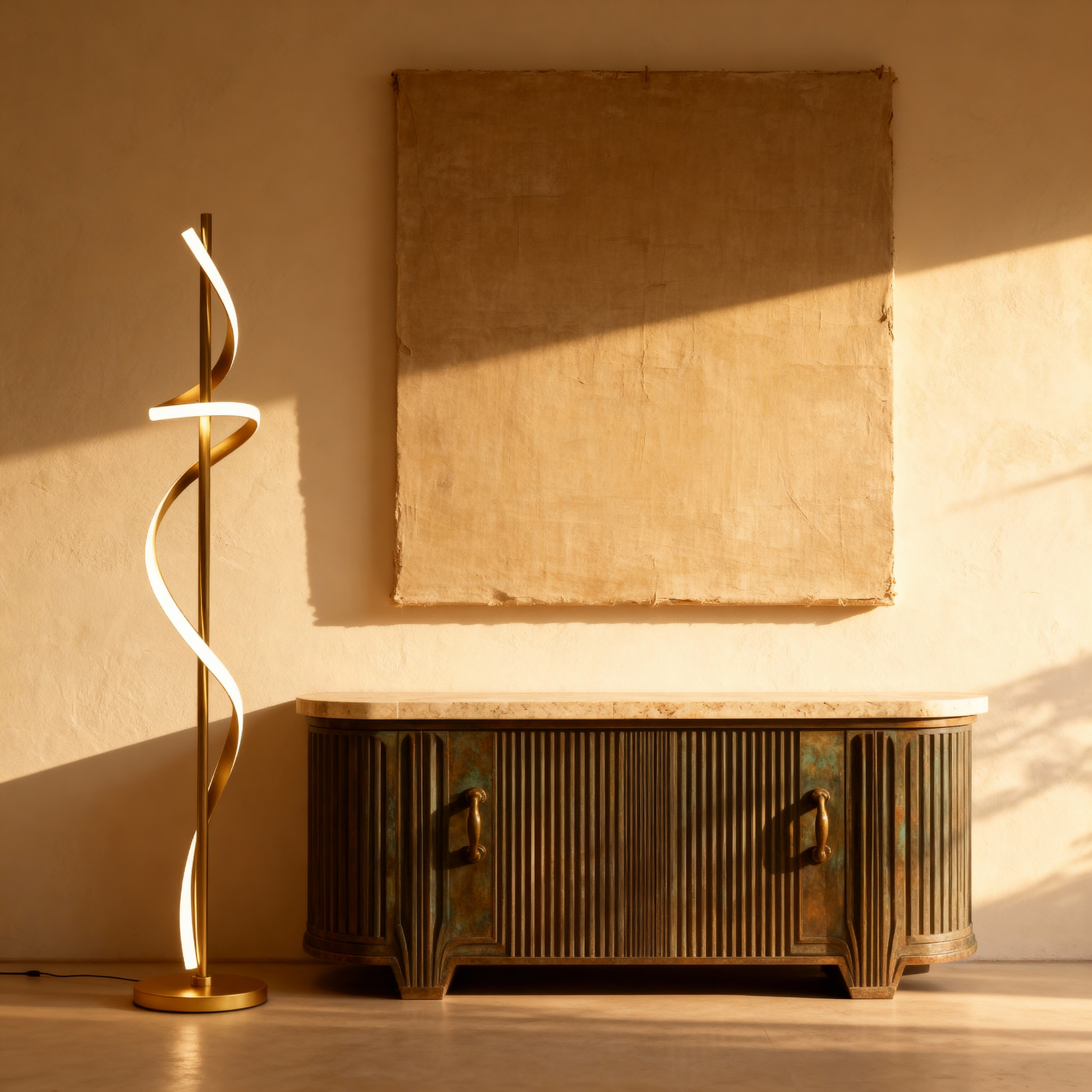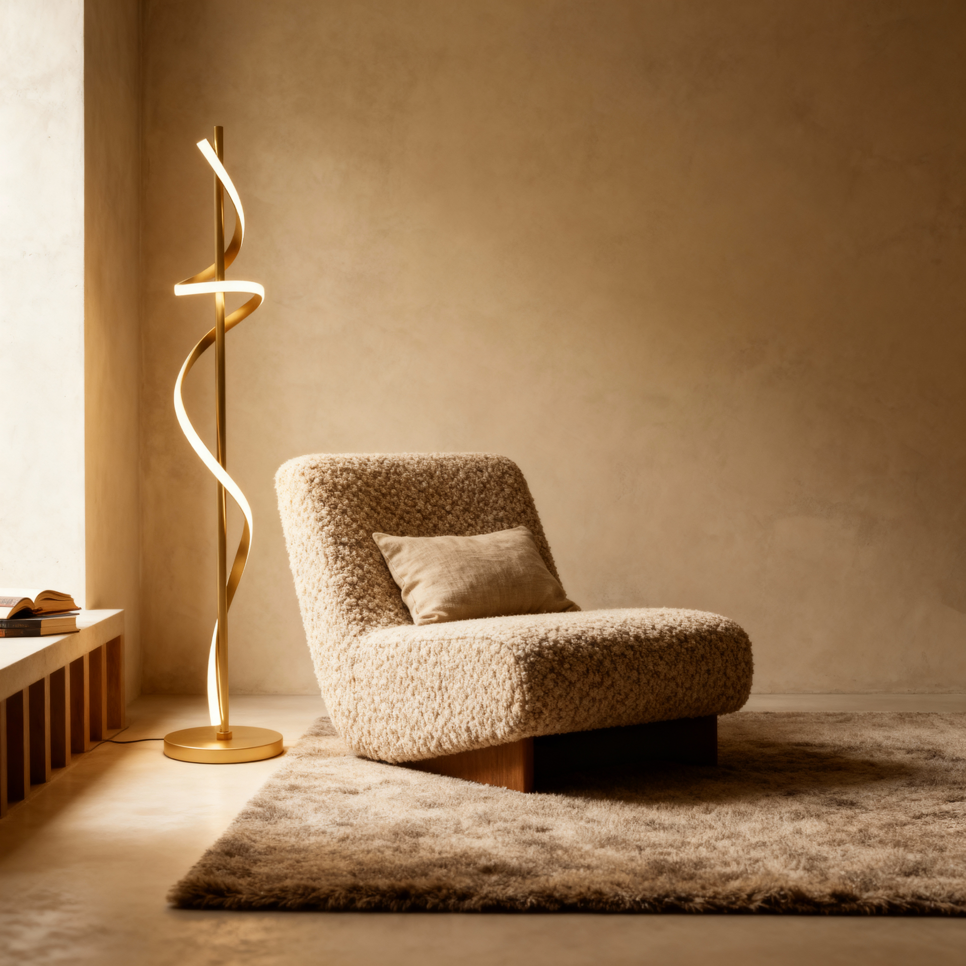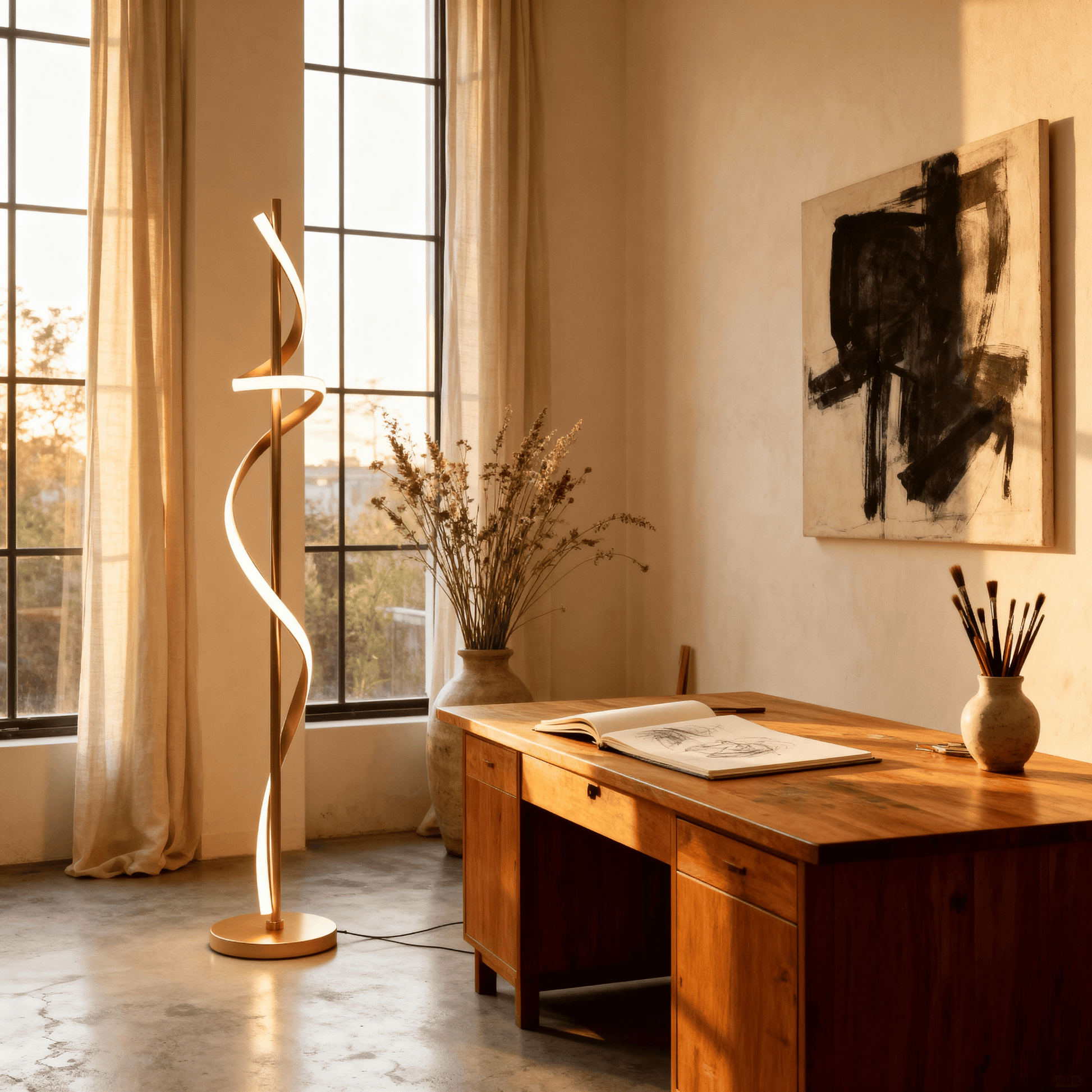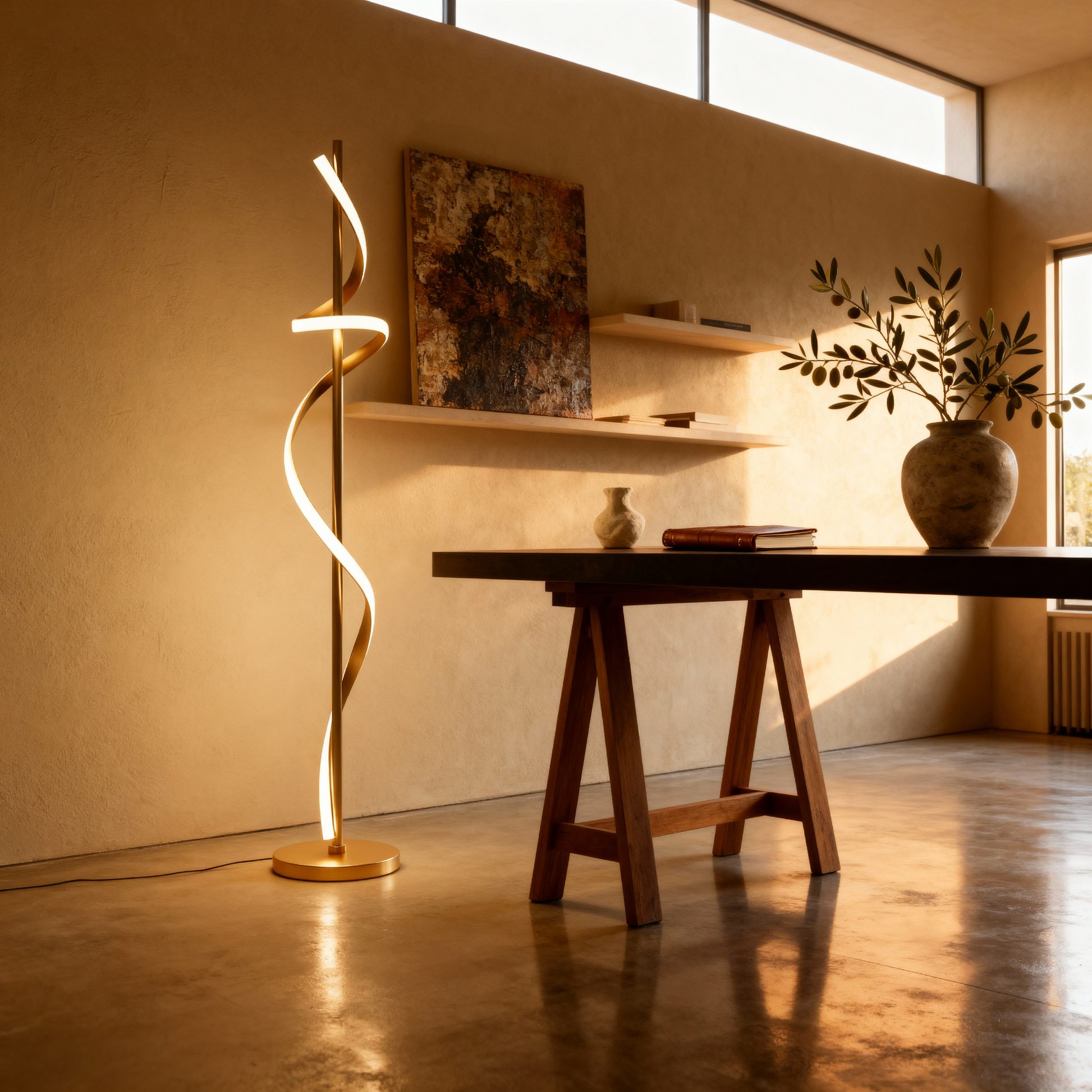 A modern spiral floor lamp that blends luminous motion with refined minimalism for elevated interiors.