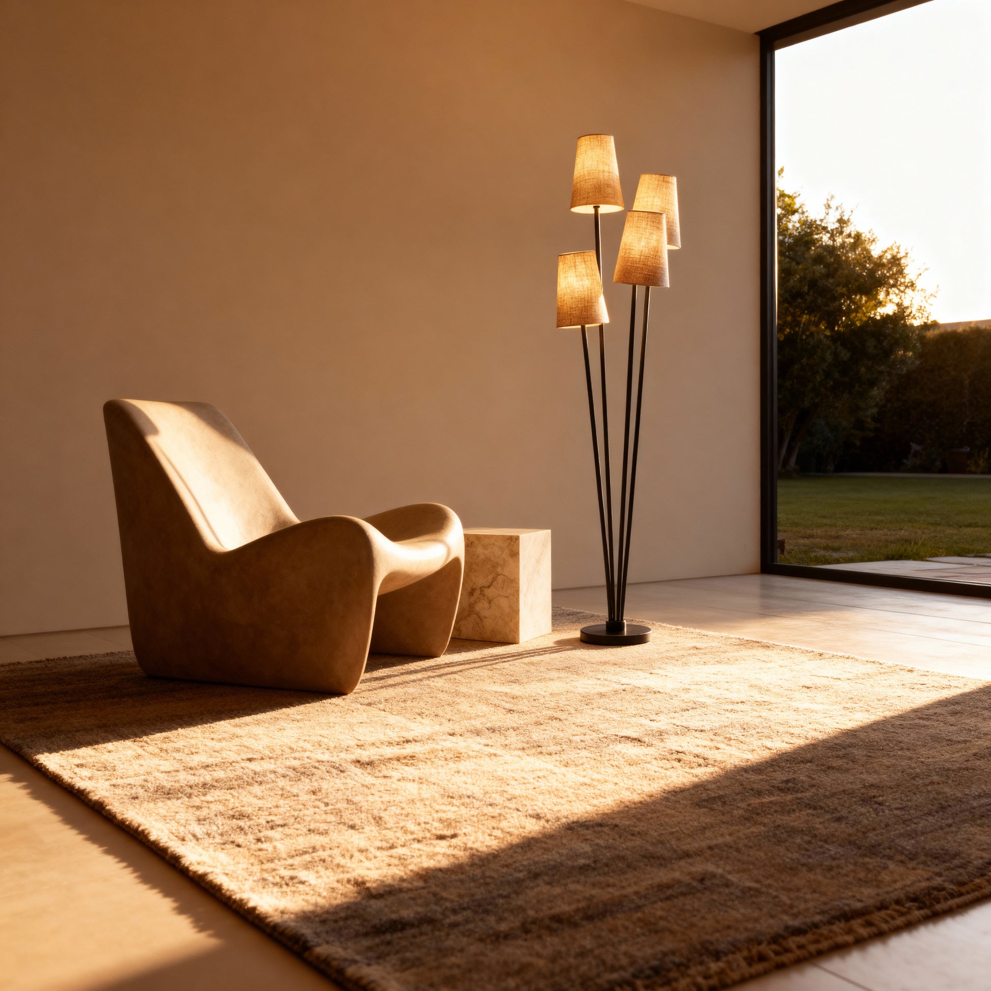 Staggered stems introduce gentle rhythm while textured shades temper brightness for an inviting, room-defining glow. Position Melo to frame a seating vignette or brighten a reading corner, adding sculptural interest with a compact footprint and warm, modern character.