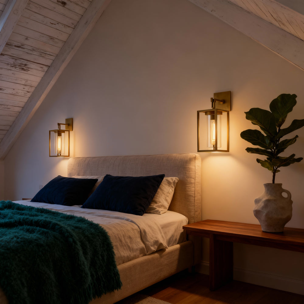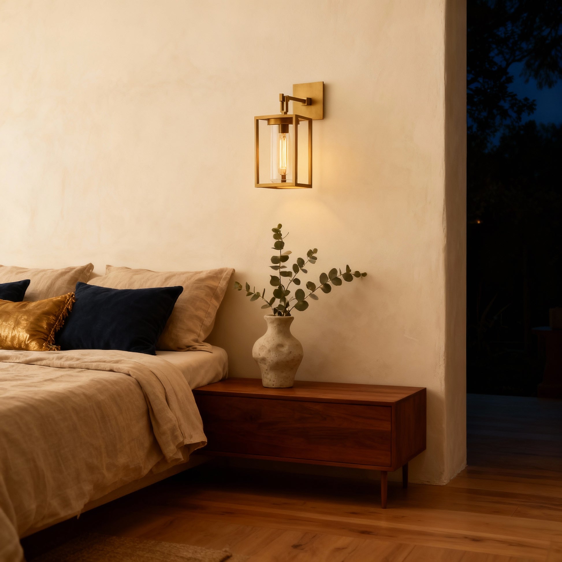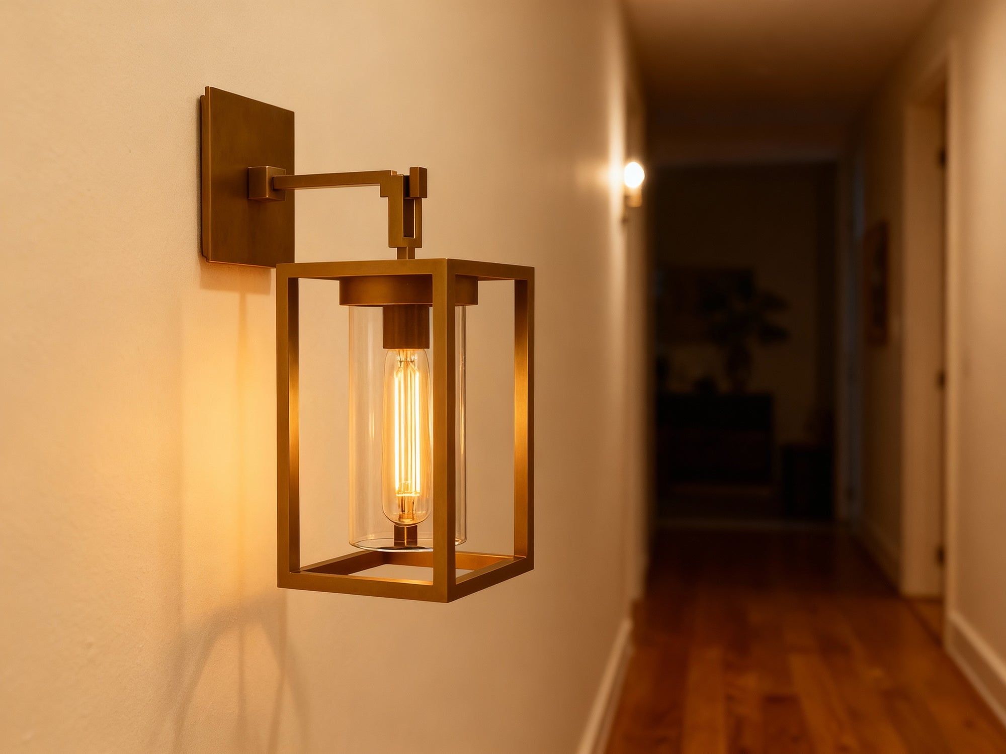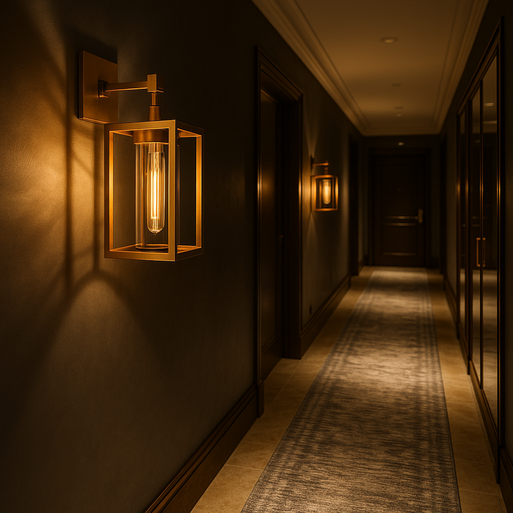 Geometry and light converge in a measured brass form that enhances spatial rhythm.