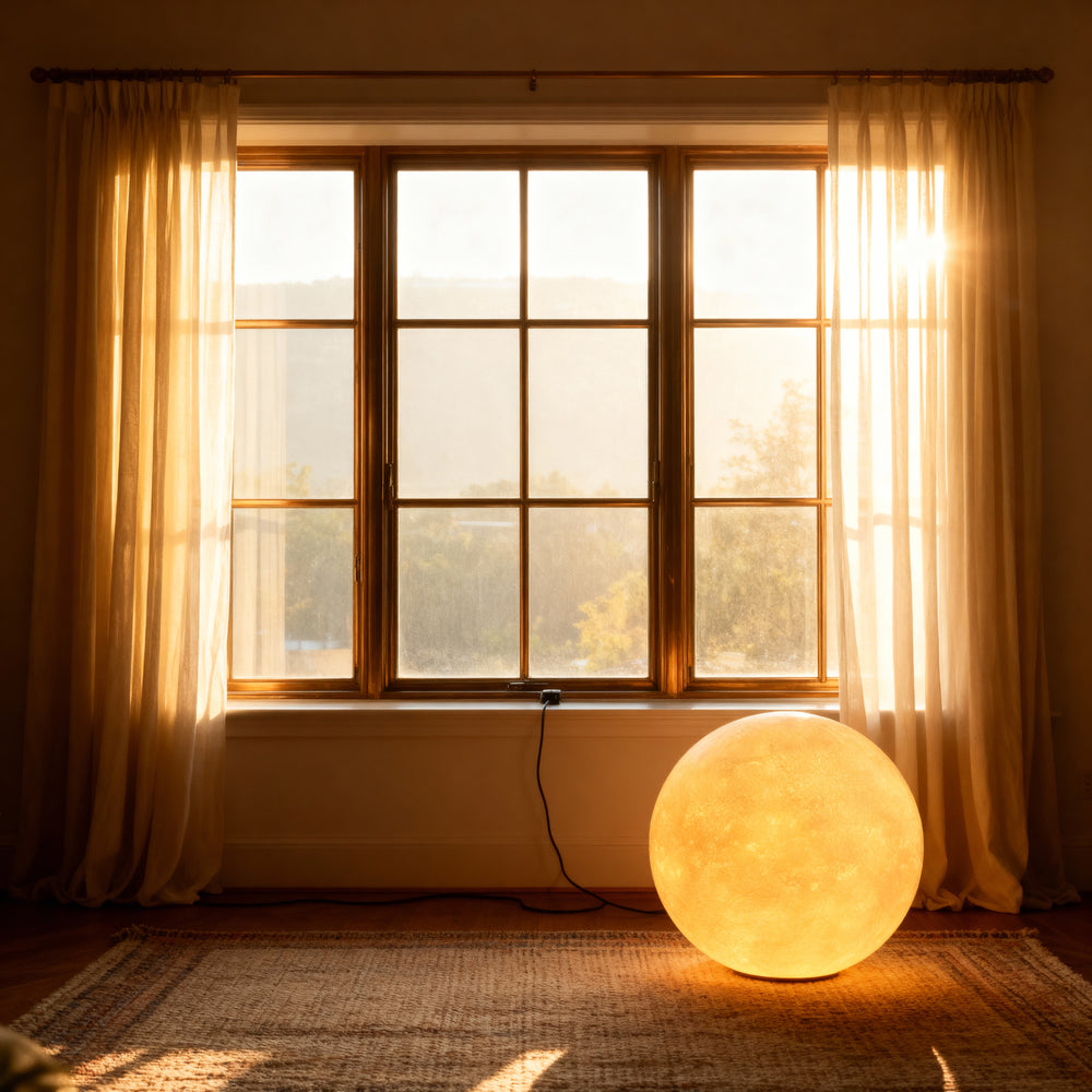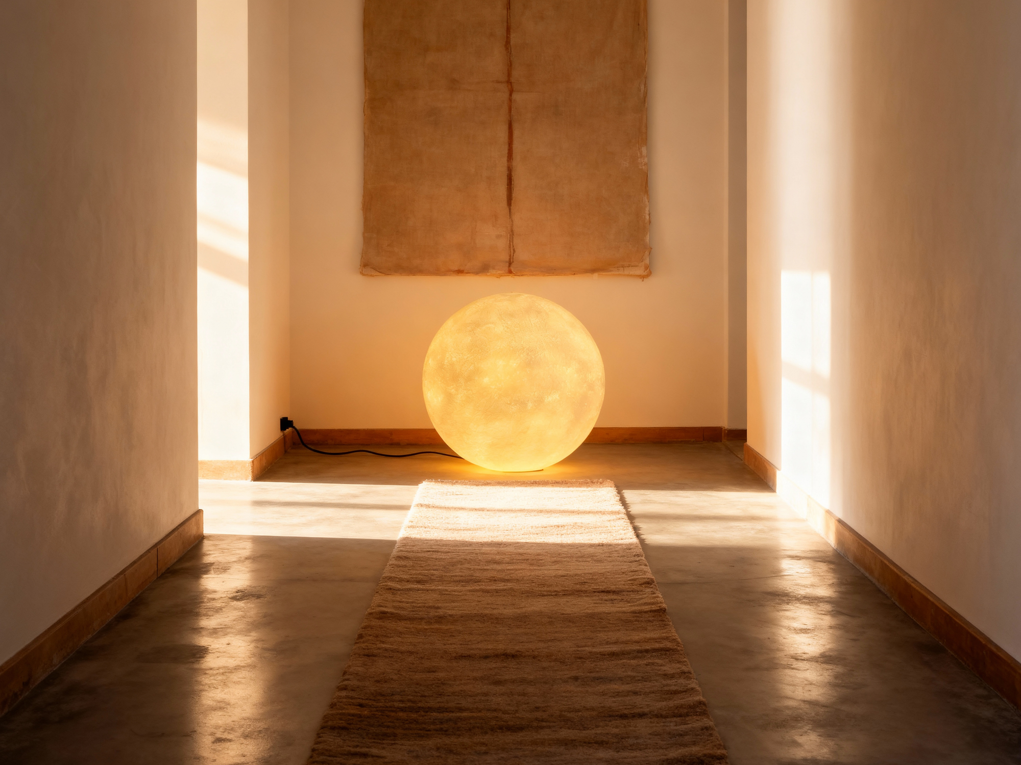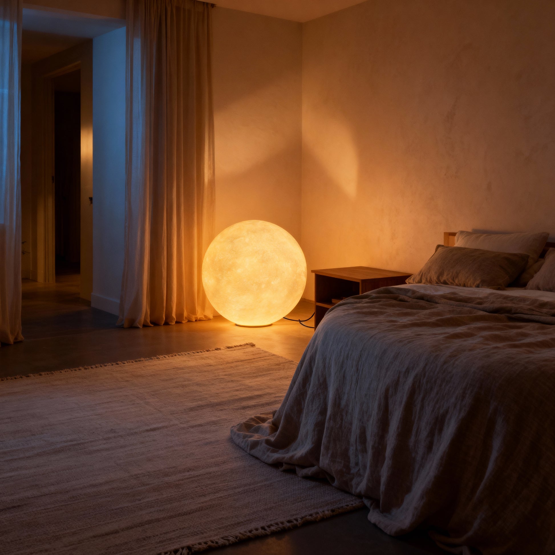A softly textured orb that casts a calm, atmospheric glow for refined interiors and quiet corners.
