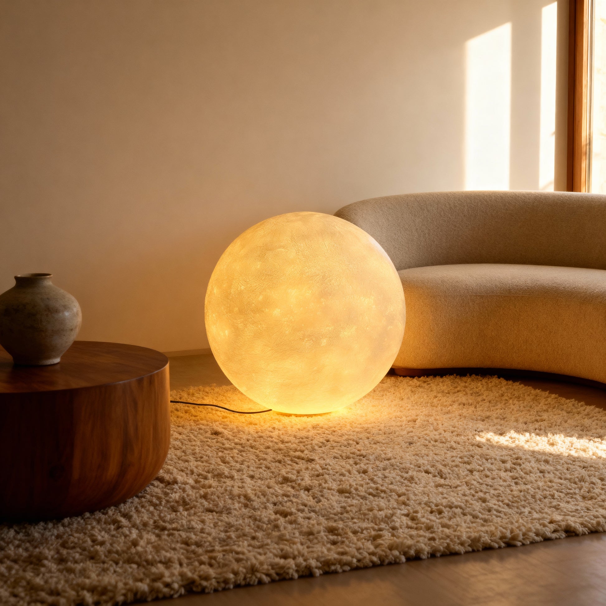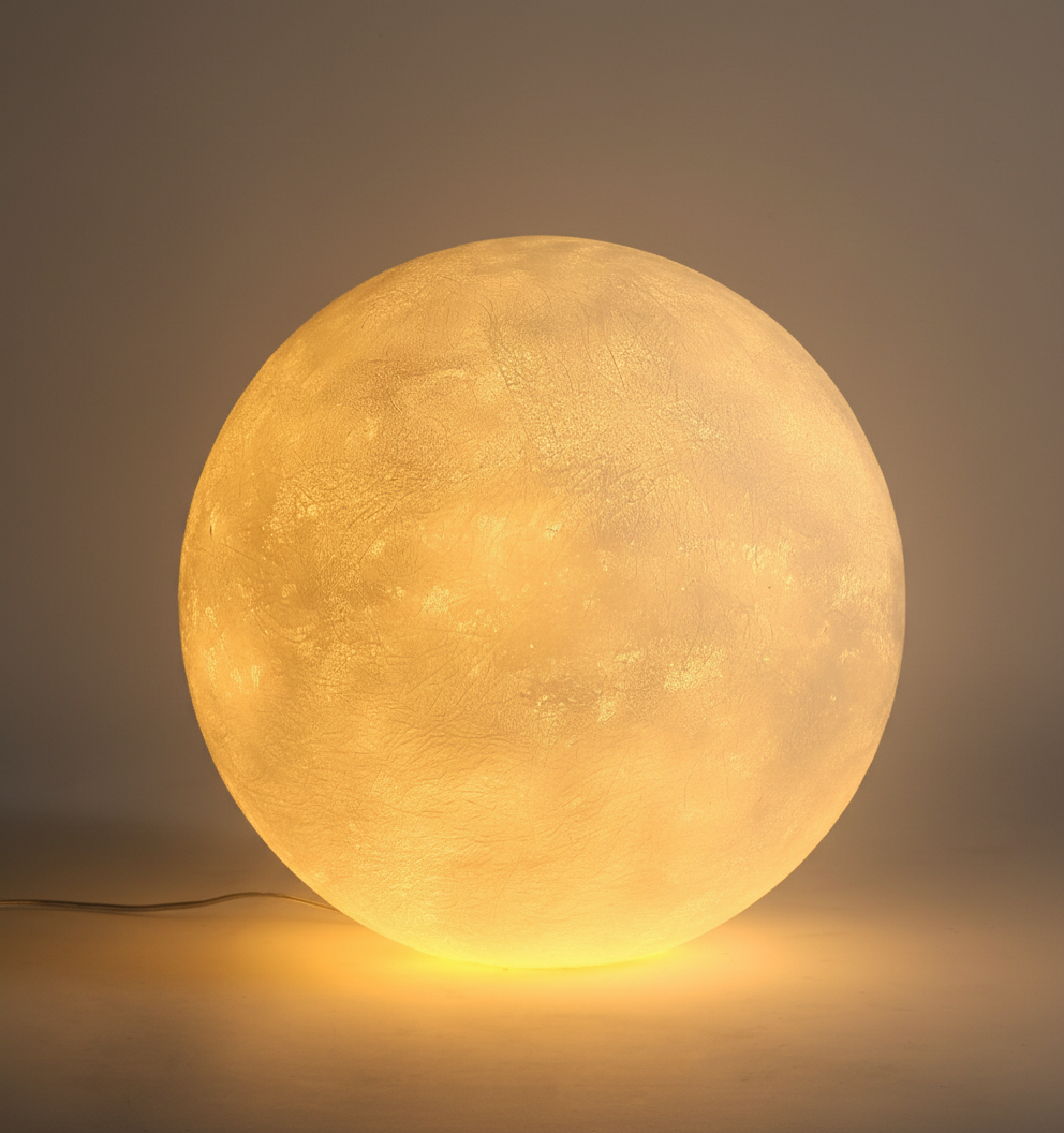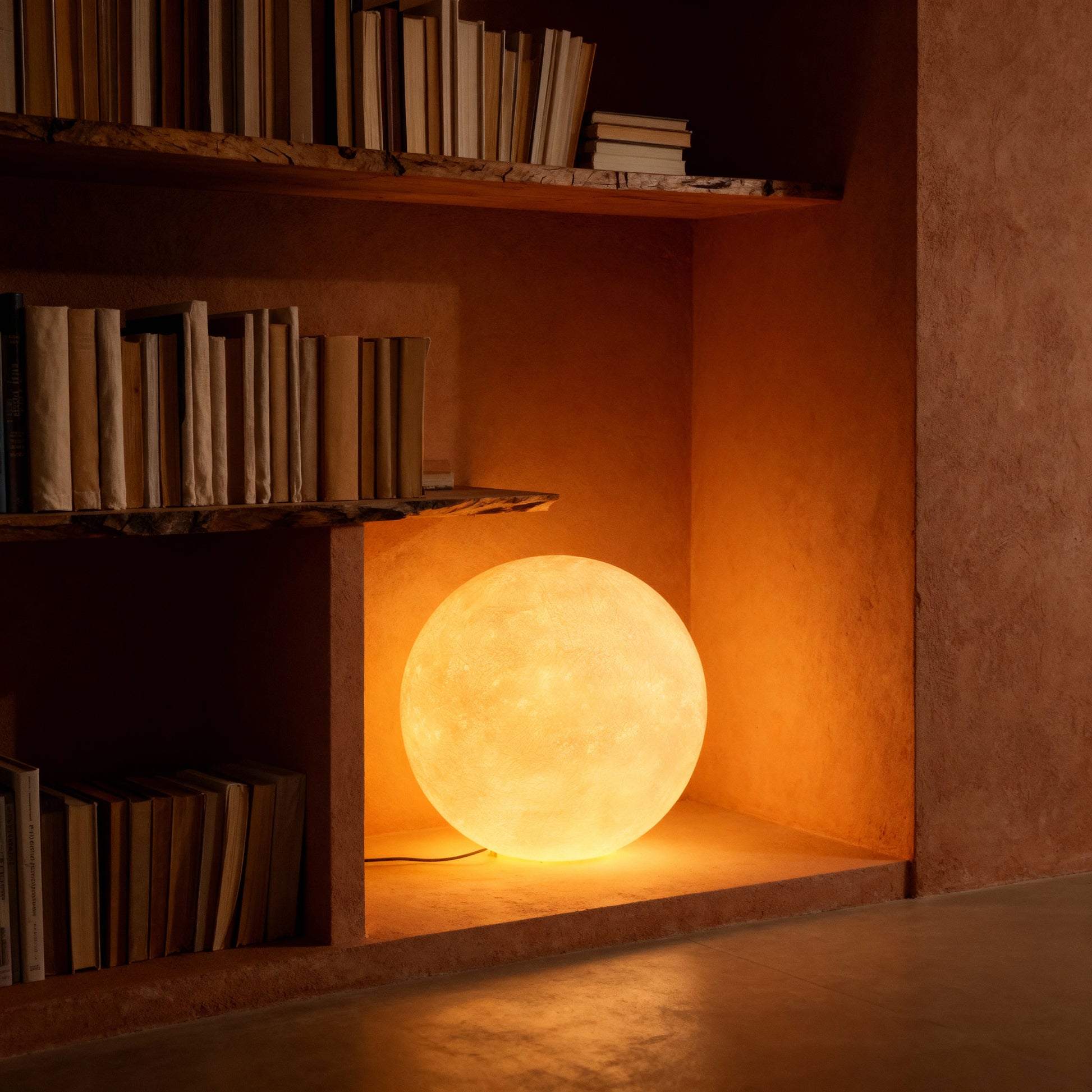 Soft texture and rounded edges bring a tranquil, lunar character to contemporary spaces while keeping the visual language minimal. The globe’s grounded stance invites layering—use it alone as a statement or cluster multiples to shape an immersive, gallery-like glow.