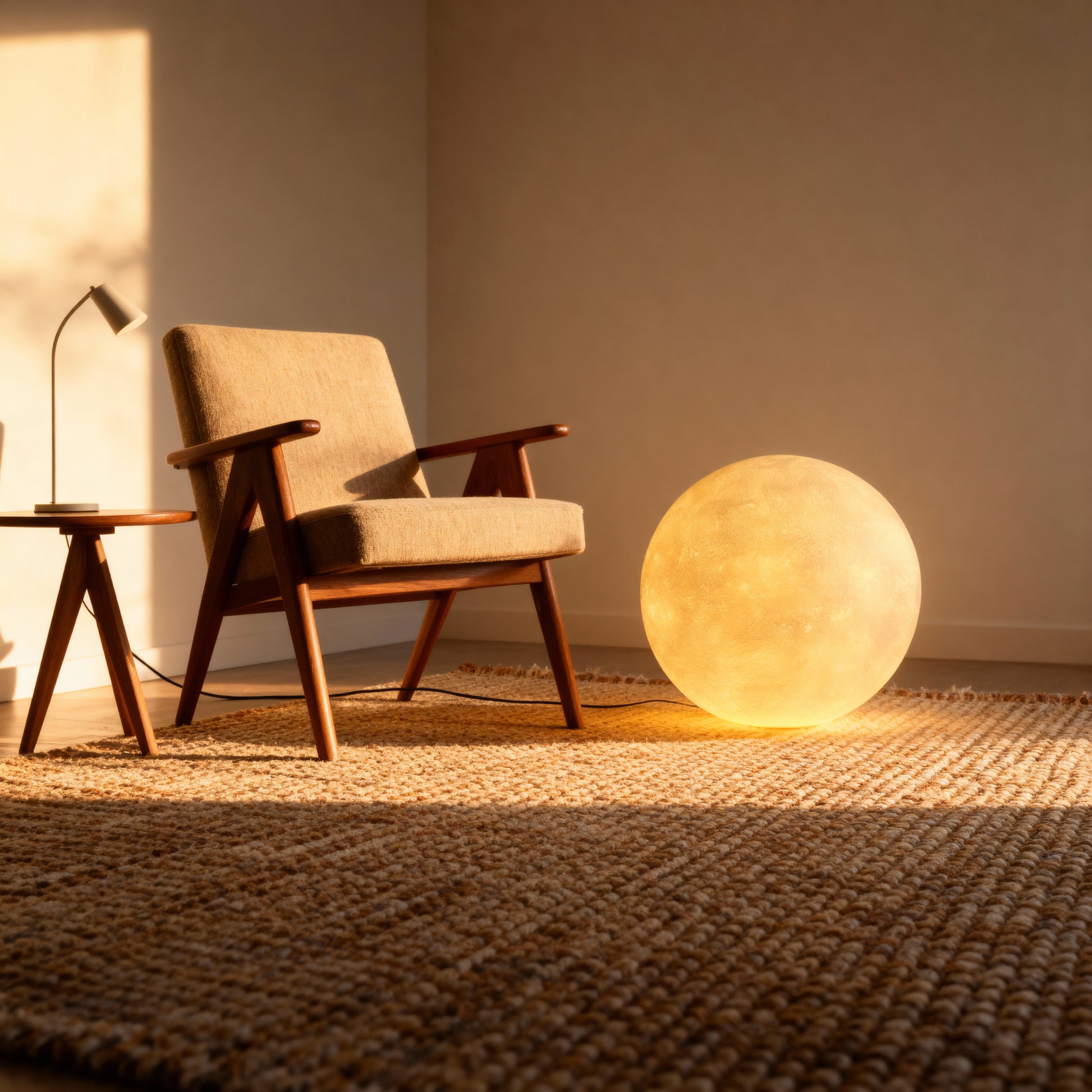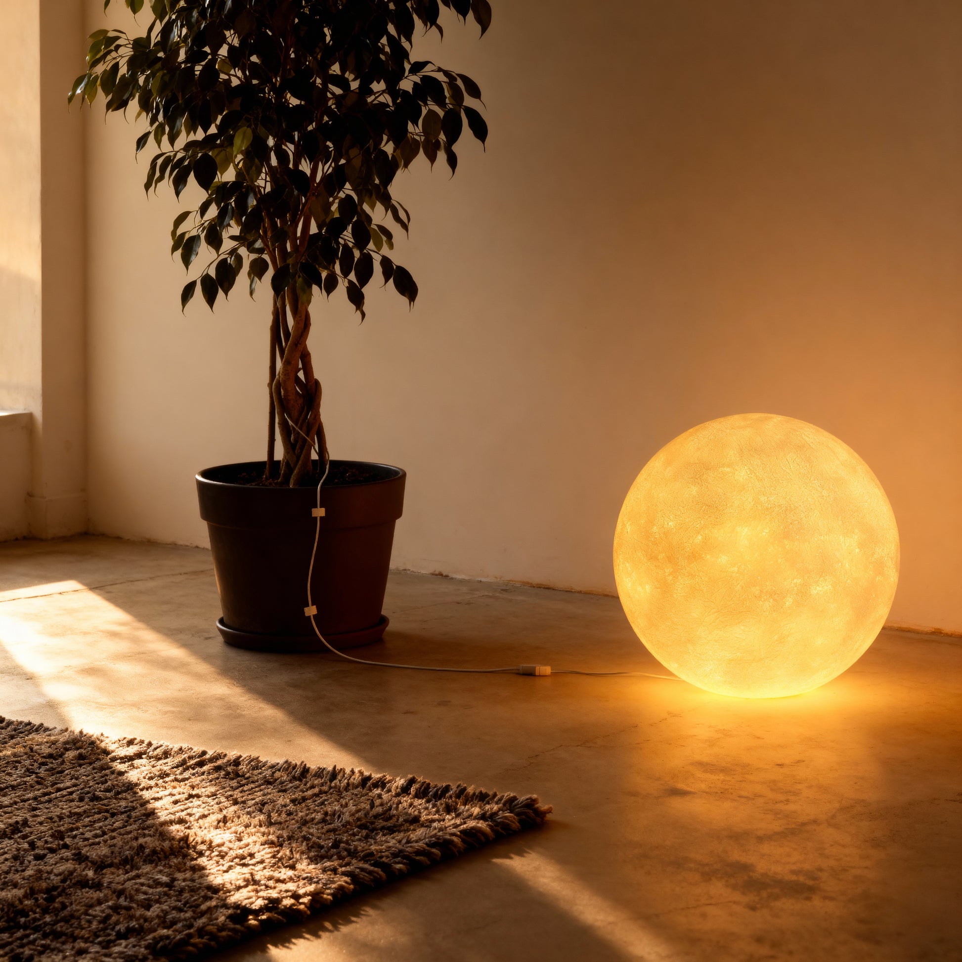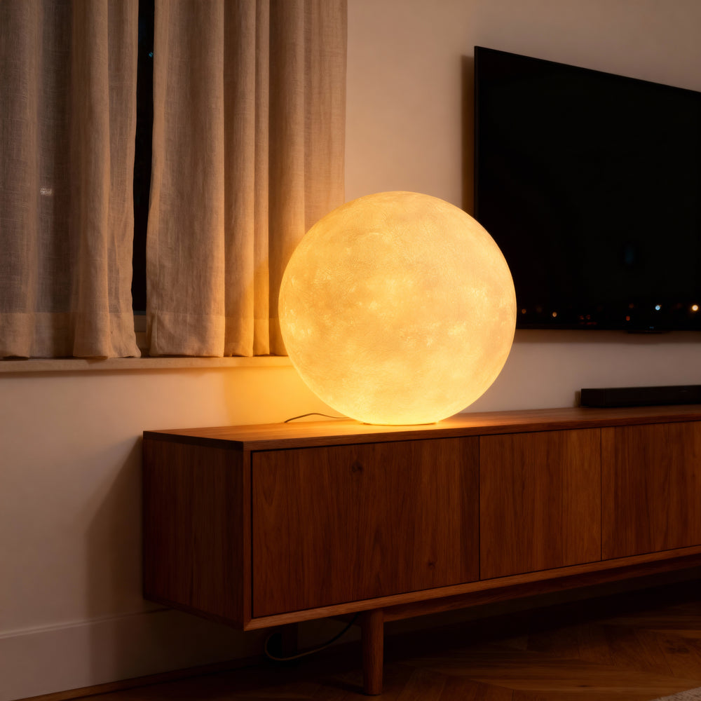 Soft texture and rounded edges bring a tranquil, lunar character to contemporary spaces while keeping the visual language minimal. The globe’s grounded stance invites layering—use it alone as a statement or cluster multiples to shape an immersive, gallery-like glow.