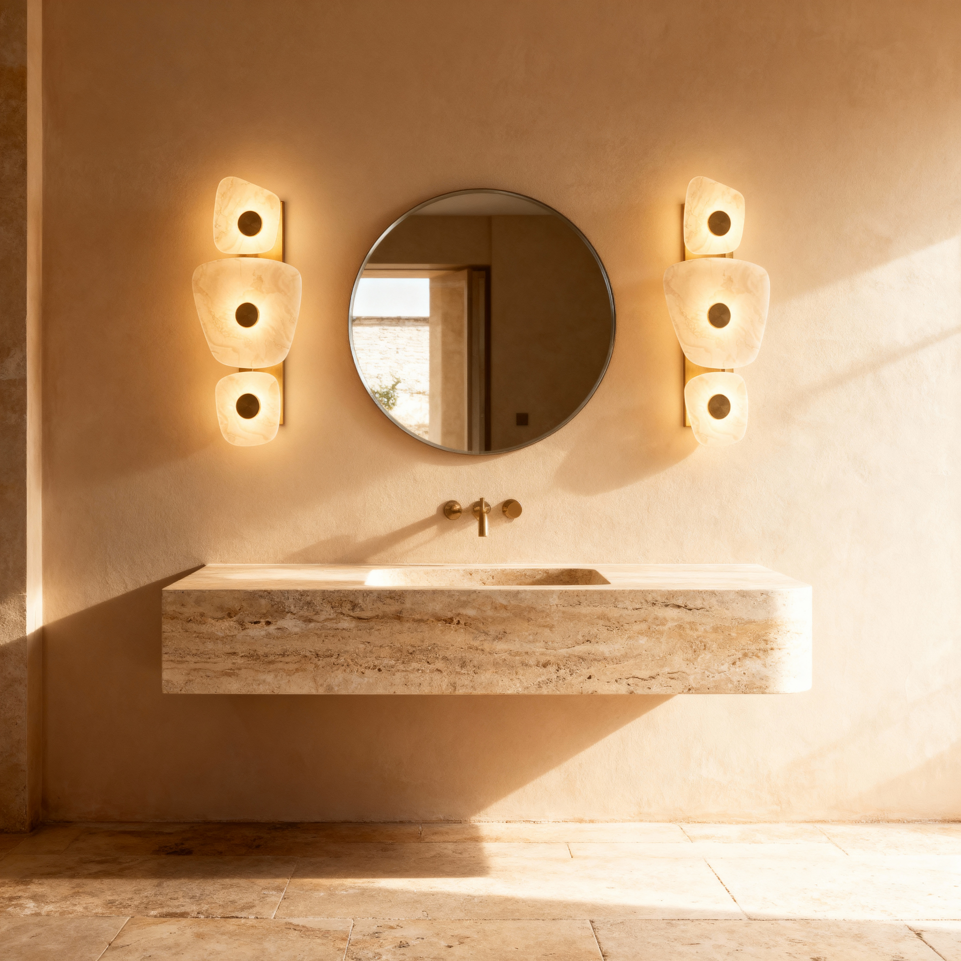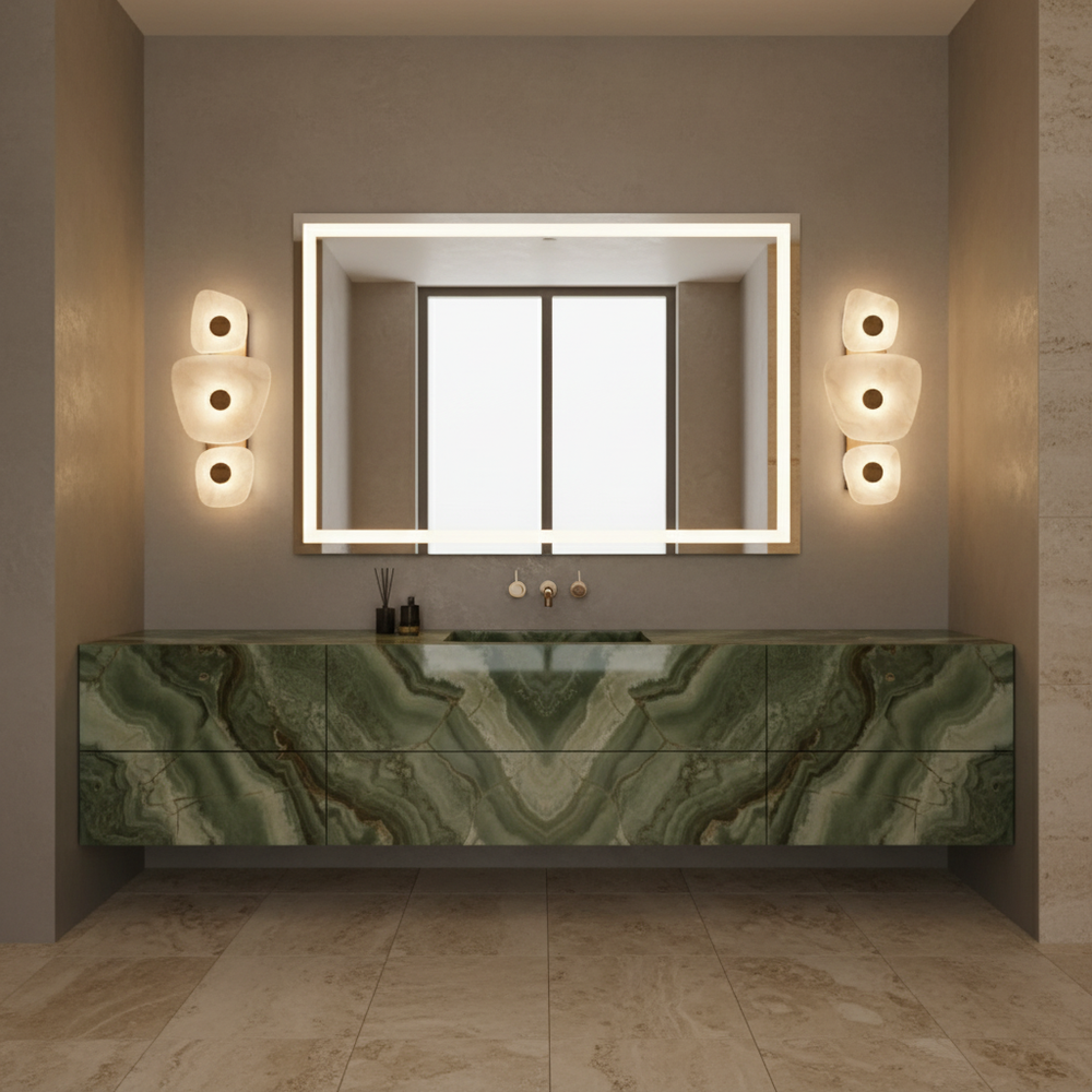 An artful composition of marble and light designed to bring quiet sophistication to interior walls.