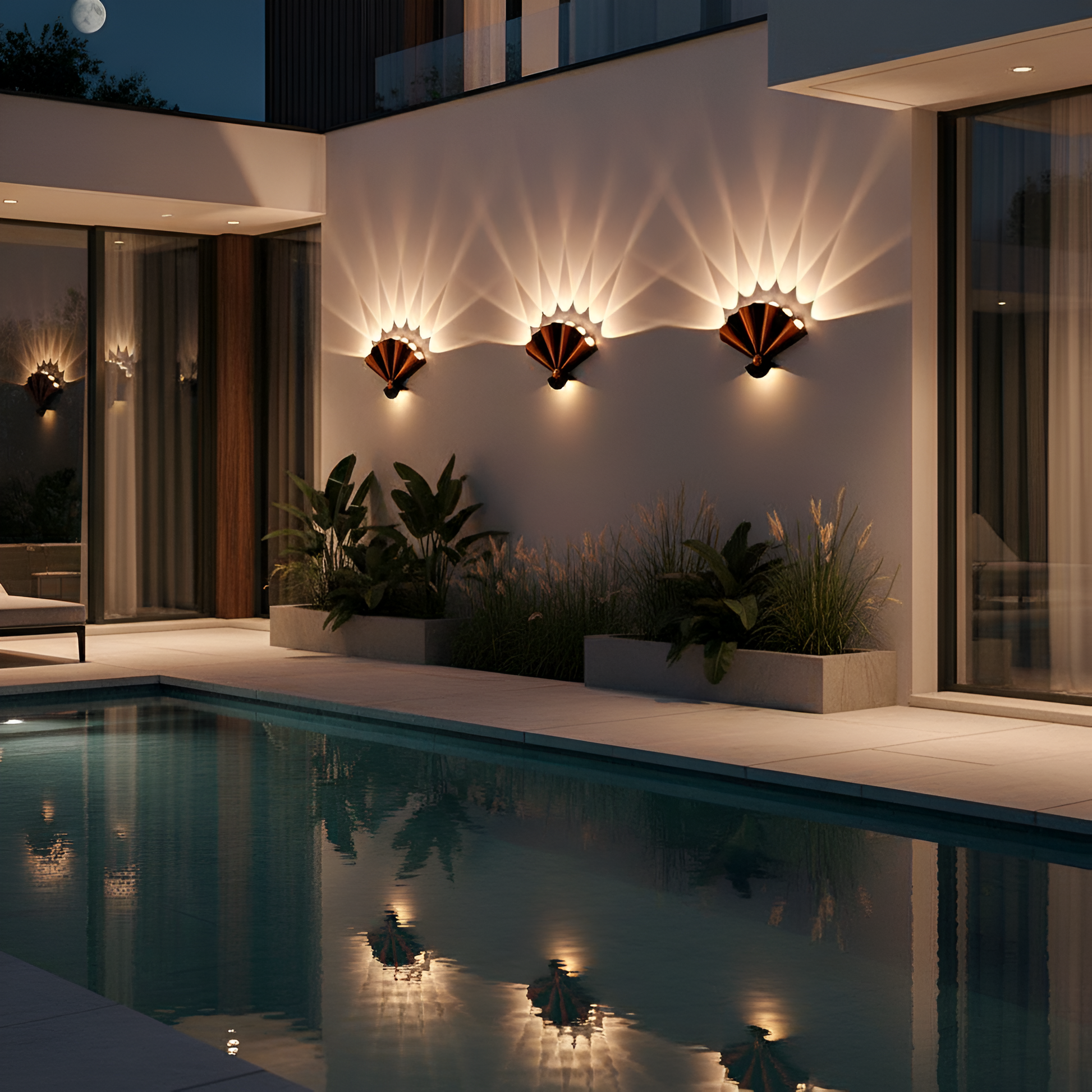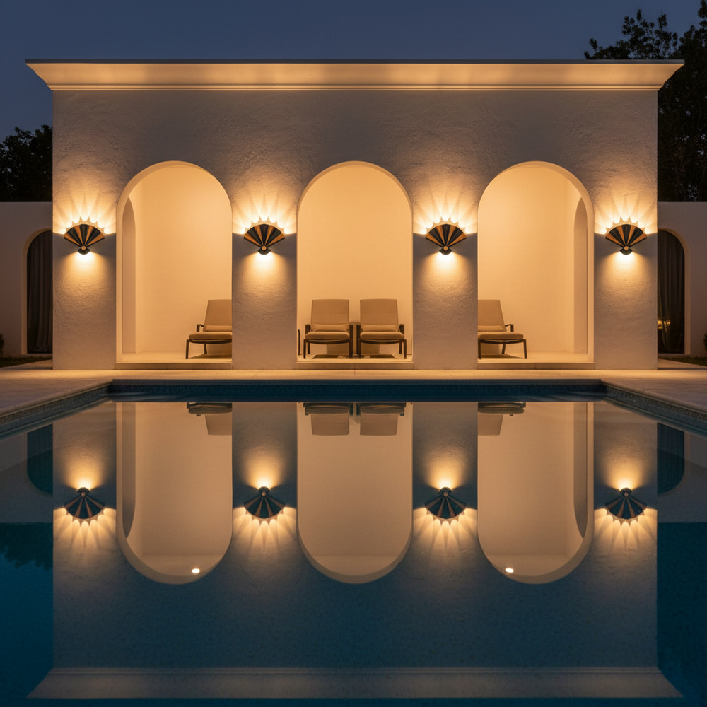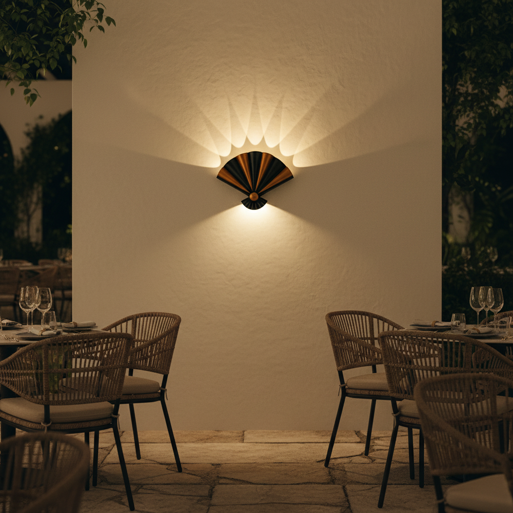 A bold, fan-inspired silhouette that redefines outdoor lighting through symmetry, softness, and refined modern style.