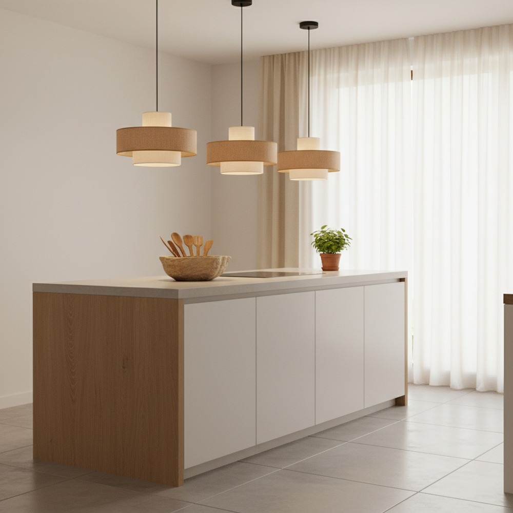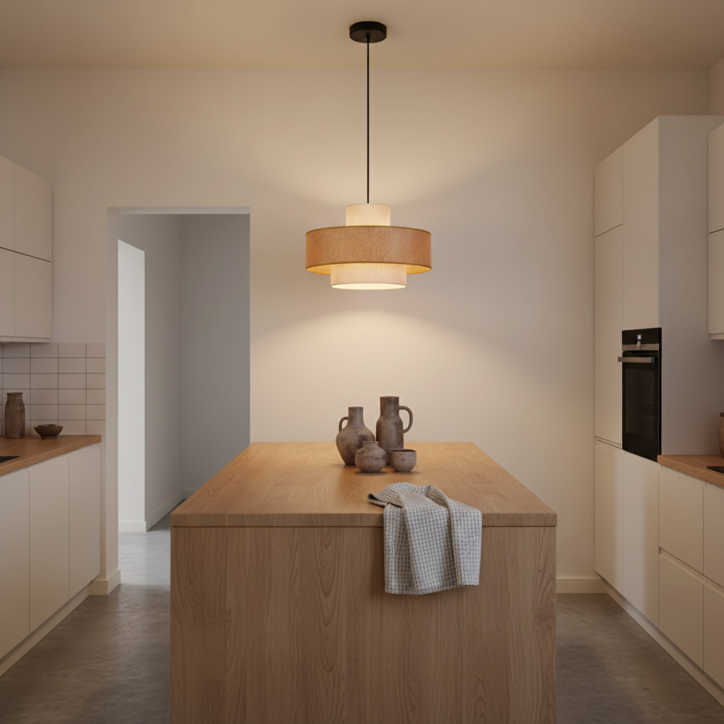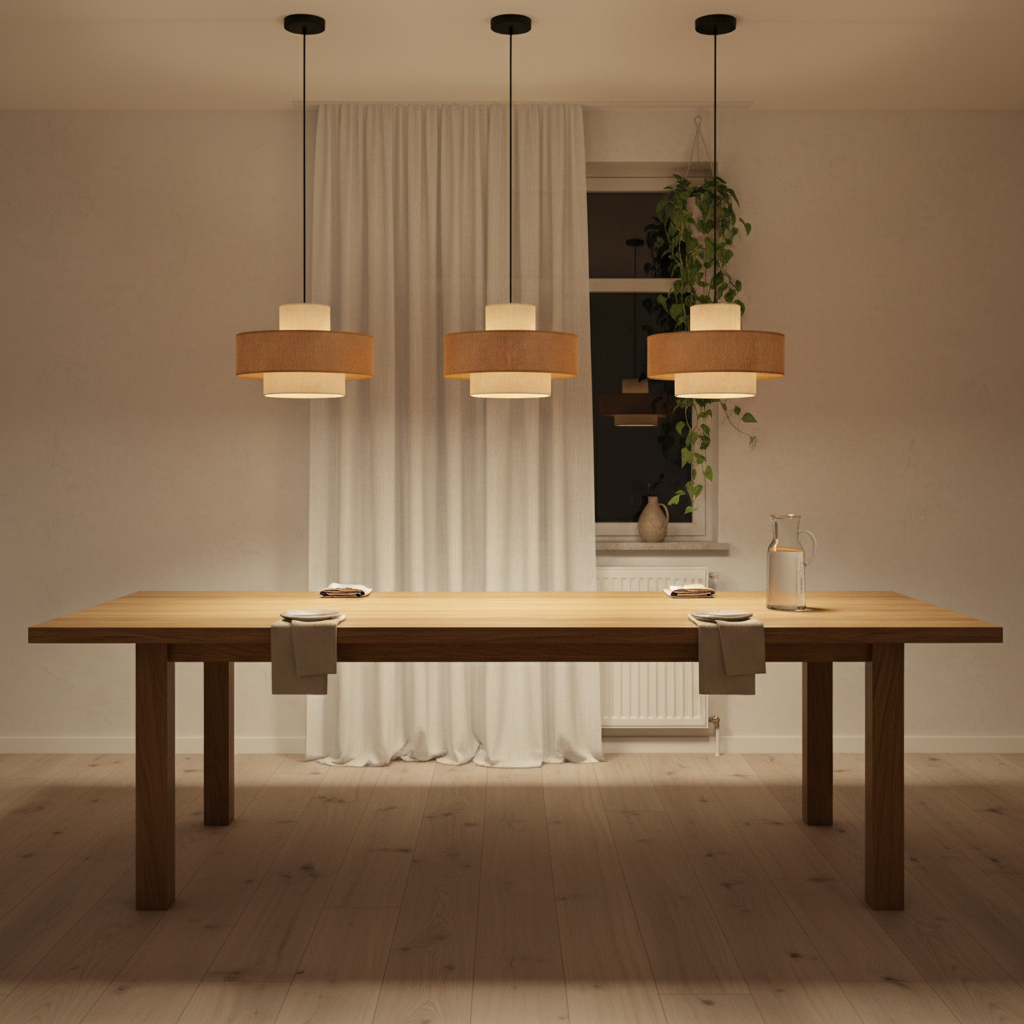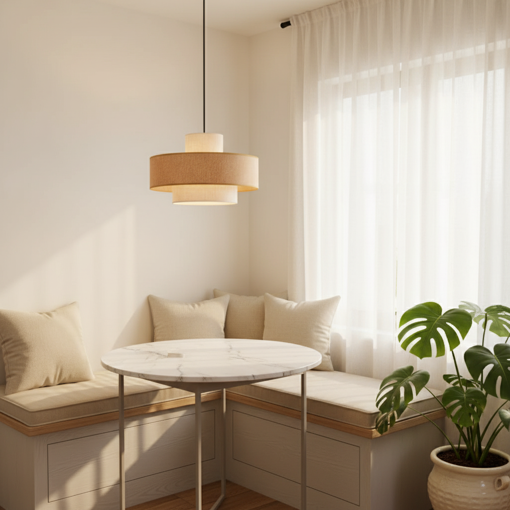 With its linen-inspired texture and tranquil proportion, Torin captures the quiet harmony of Japandi interiors. The dual shade diffuses a balanced glow that softens space, enriching moments of calm and presence.