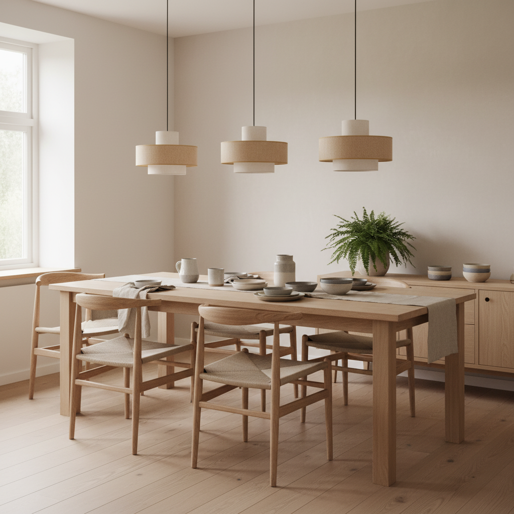 A softly layered pendant that blends Scandinavian clarity with Japanese warmth in an understated, natural form.