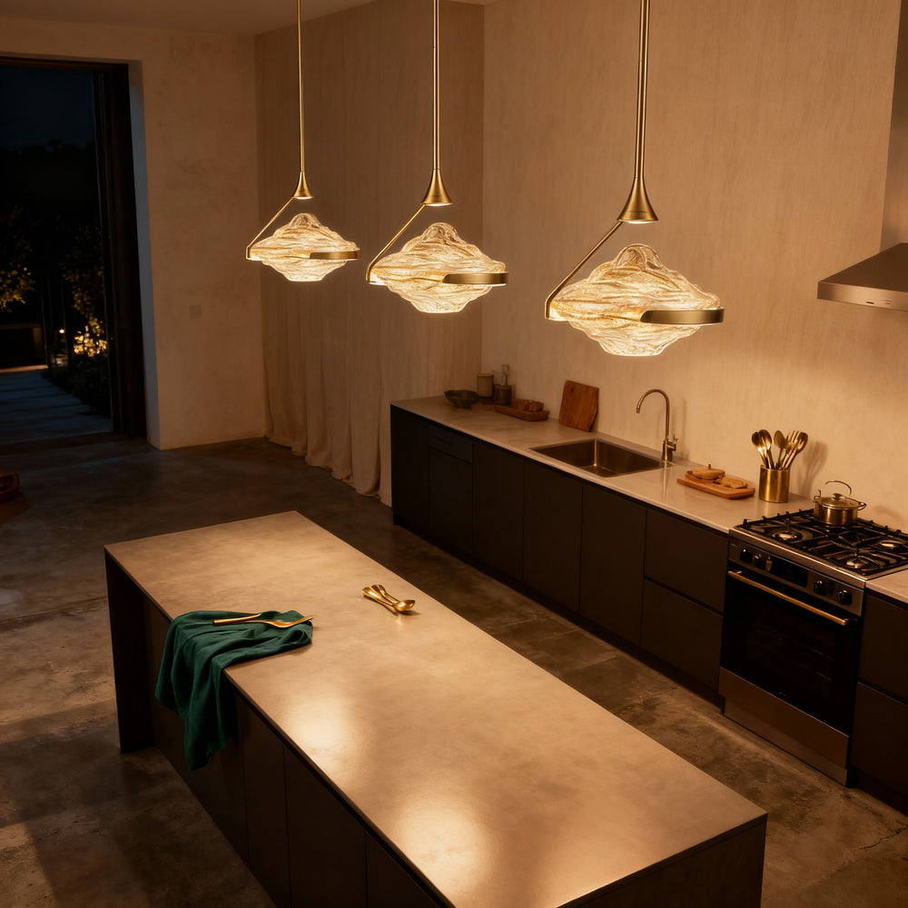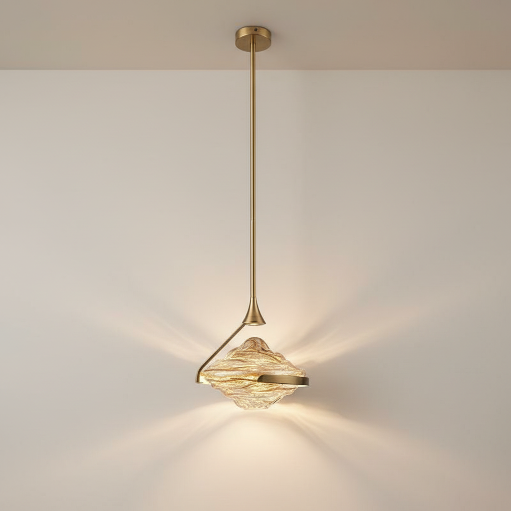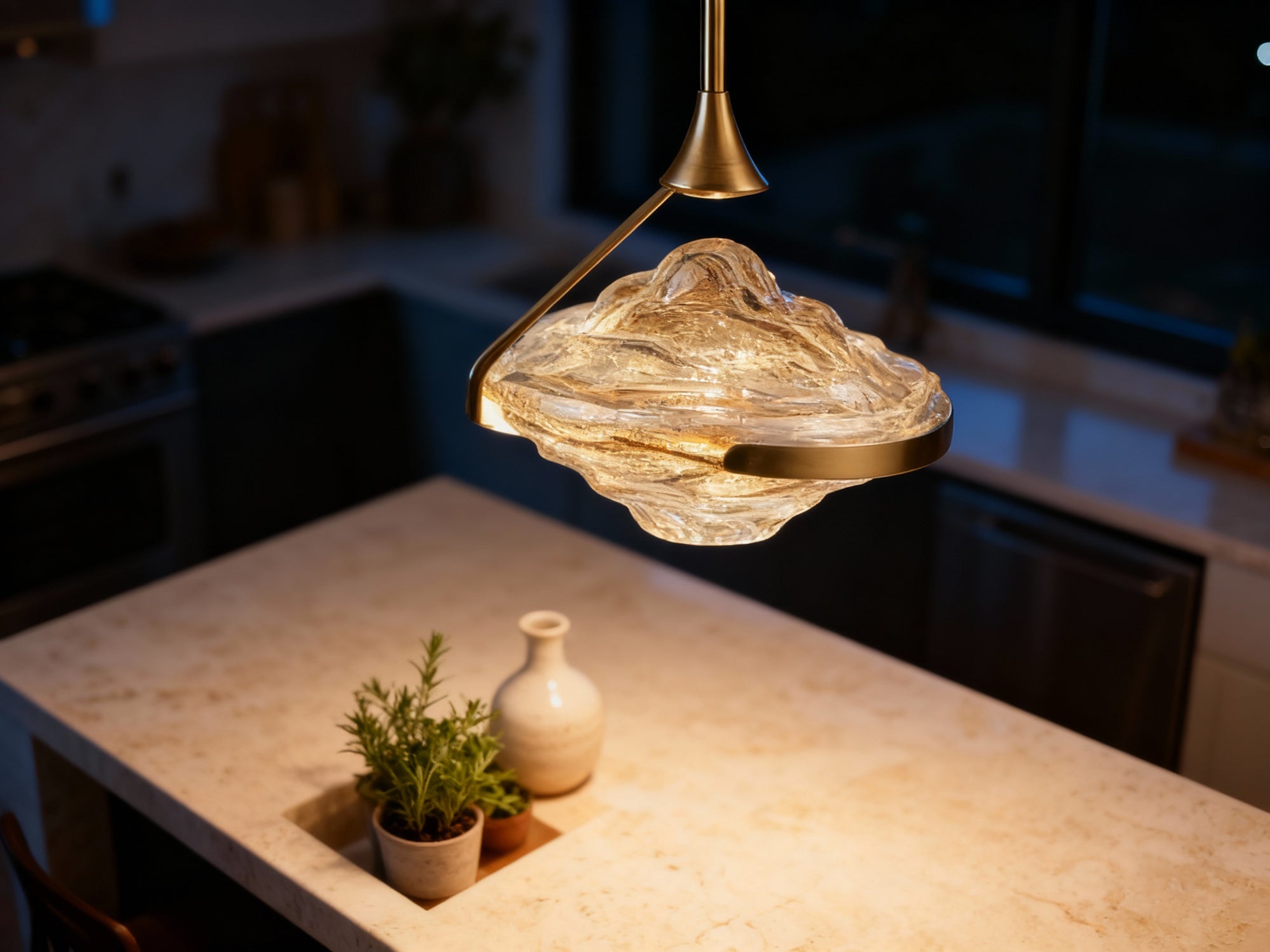 The elegantly molded shade introduces a touch of artistic sophistication into rooms seeking subtle visual interest.